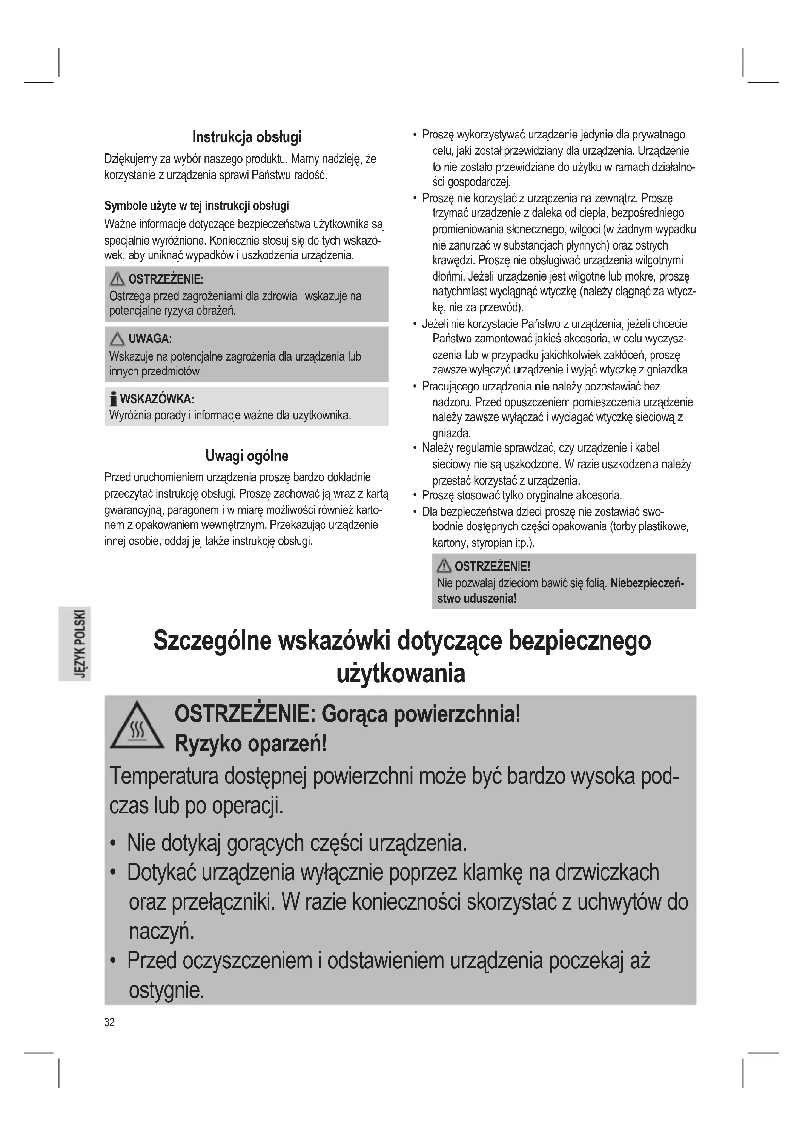 - Przed oczyszczemiem i odstawieniem urzadzenia przy czękaj aż ostygniie.
