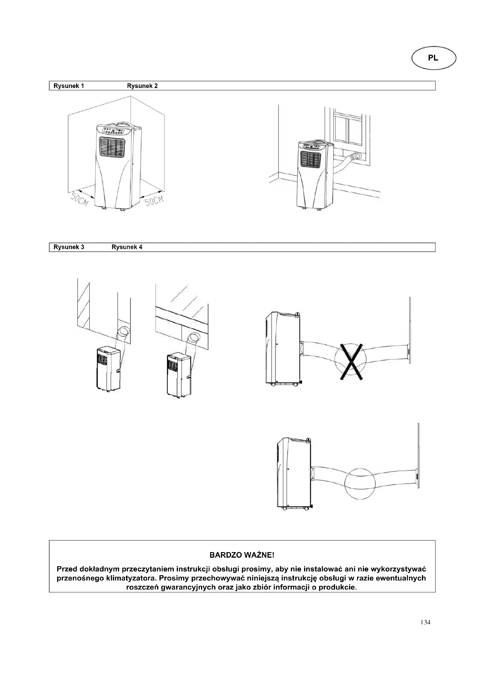 BARDZO WAŻNE! Przed dokładnym przeczytaniem instrukcji obsługi prosimy, aby nie instalować ani nie wykorzystywać przenośnego klimatyzatora. Prosimy przechowywać niniejszą instrukcję obsługi w razie ewentualnych roszczeń gwarancyjnych oraz jako zbiór informacji o produkcie.