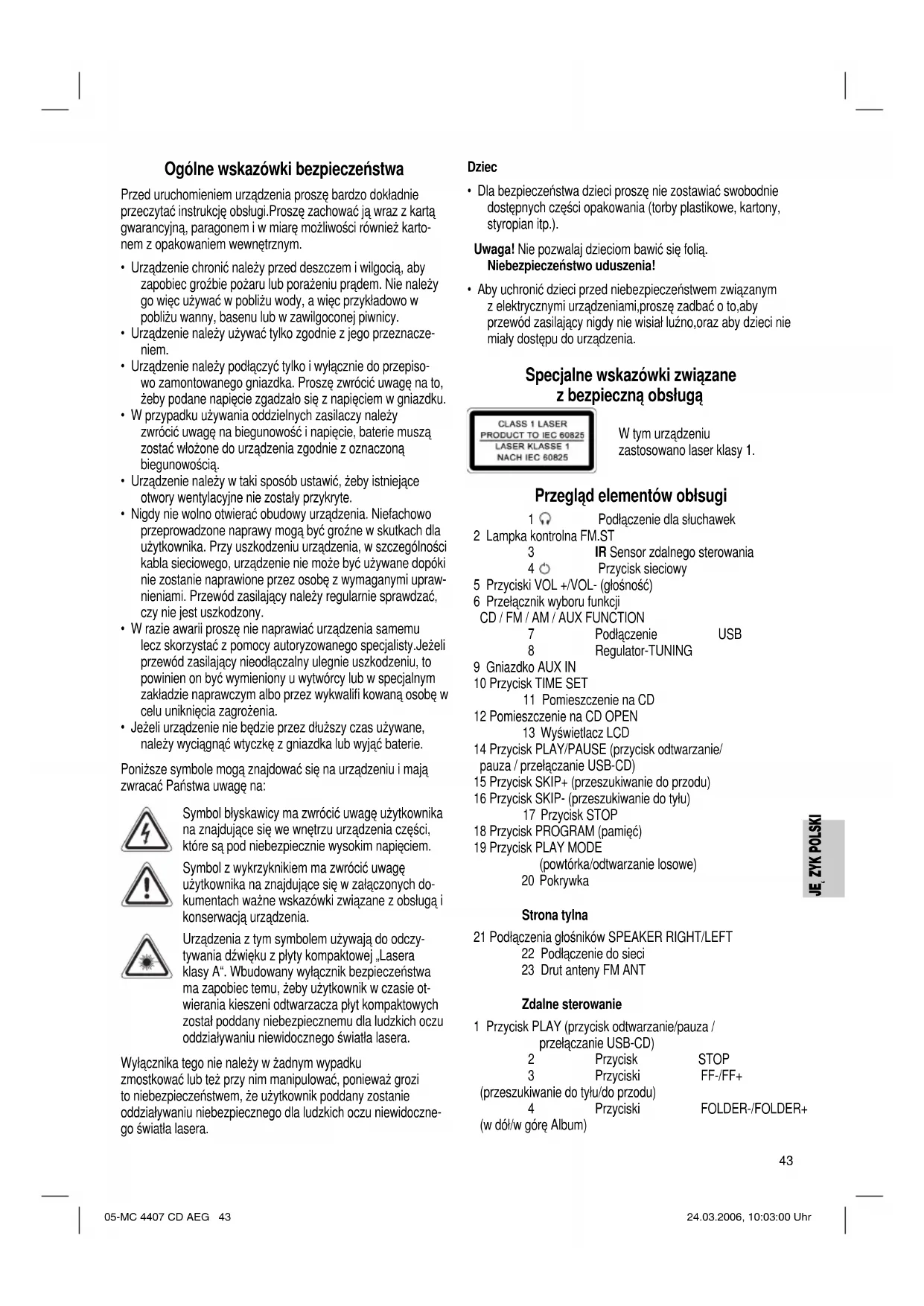 INSTRUKCJA OBSŁUGI MC 4407 CDMP3 AEG