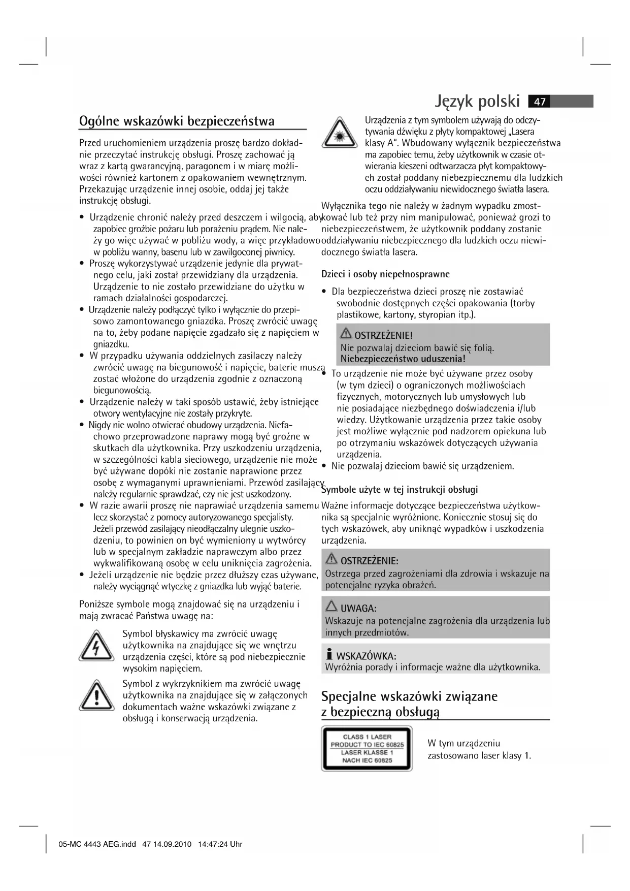 INSTRUKCJA OBSŁUGI MC 4443 CD AEG