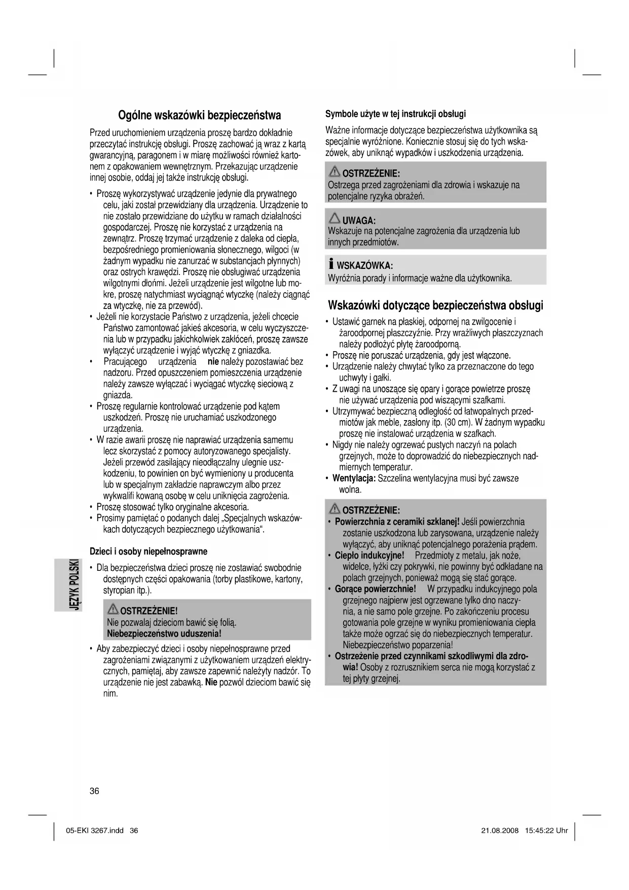 - Ostrzeżenie przed czynnikami szkodliwymi dla zdro- wia! Osoby z rozrusznikiem serca nie mogą korzystać z tej płyty grzejnej. 05-EKI 3267.indd 3605-EKI 3267.indd 36 21.08.2008 15:45:22 Uhr21.08.2008 15:45:22 Uhr37