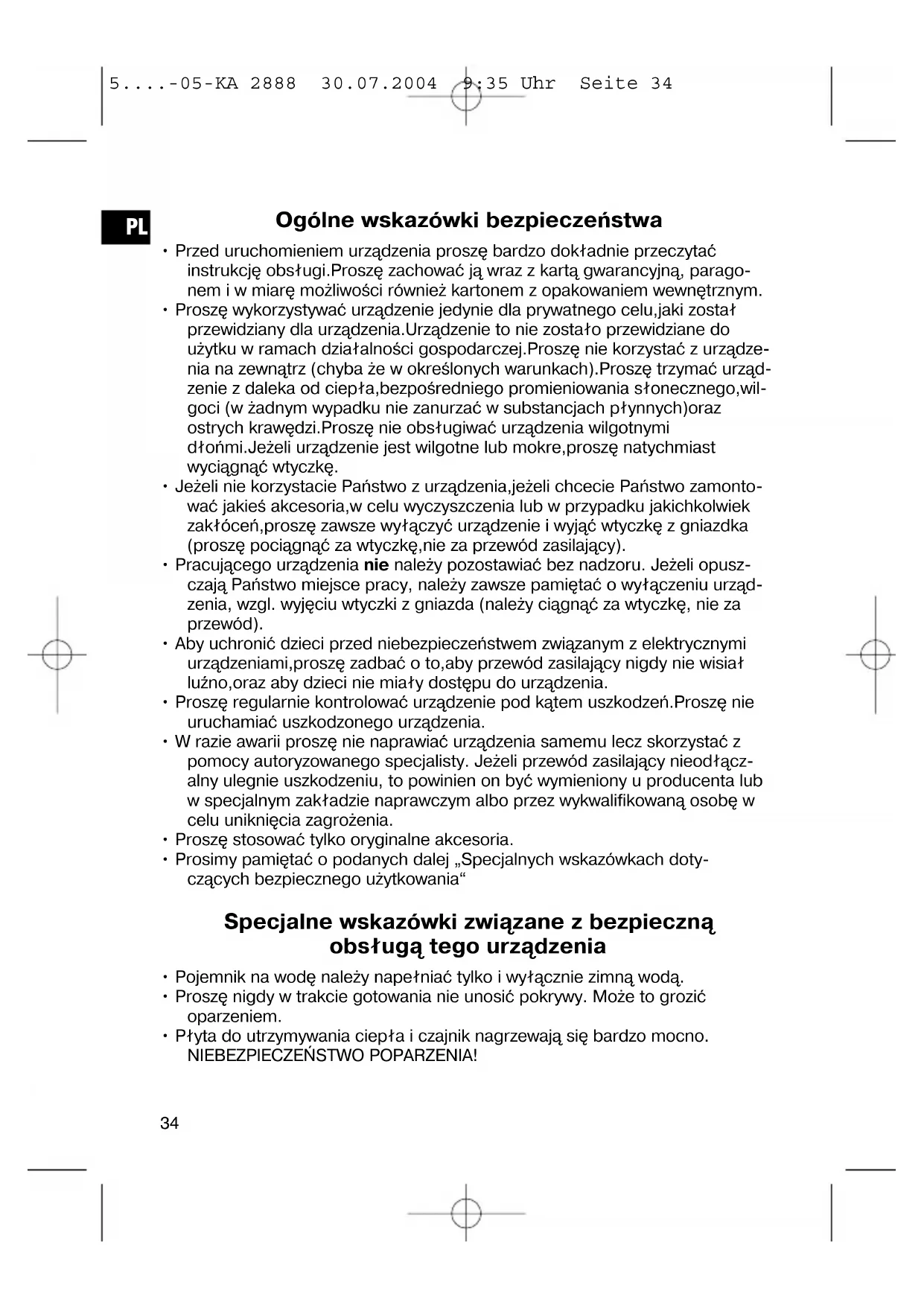 5....-05-KA 2888 30.07.2004 9:35 Uhr Seite 34Przed włączeniem urządzenia