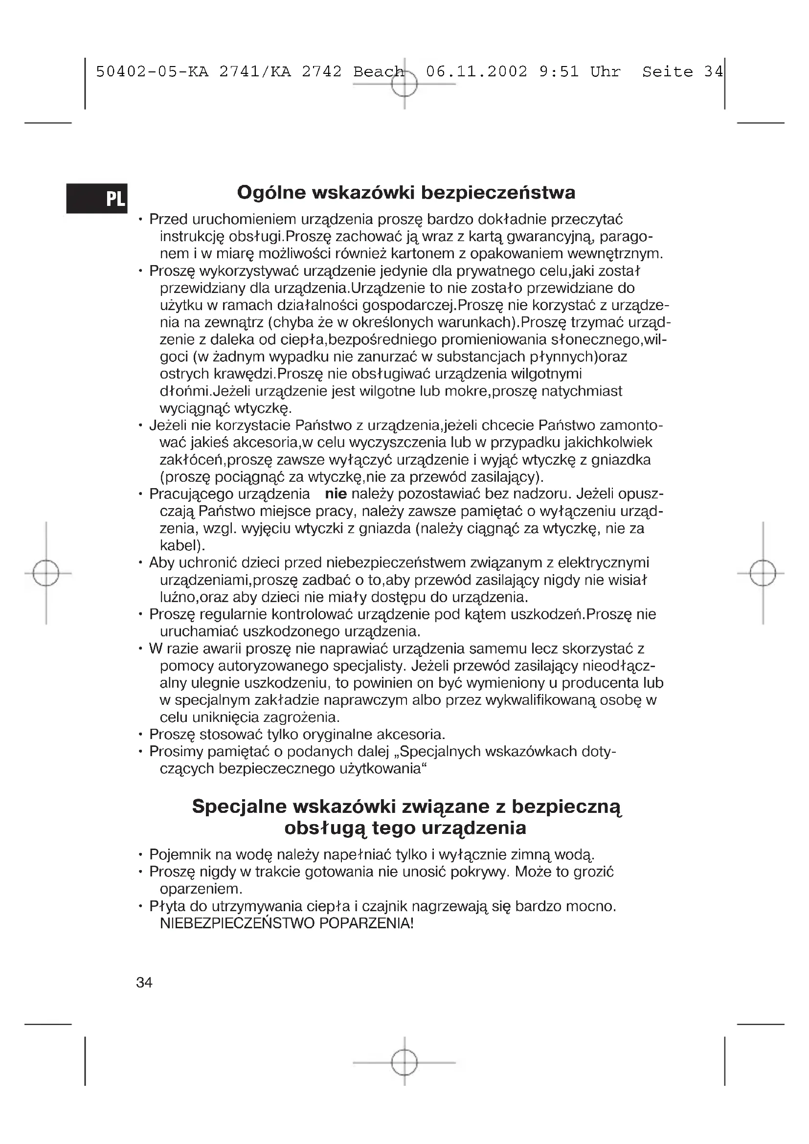 50402-05-KA 2741/KA 2742 Beach 06.11.2002 9:51 Uhr Seite 33Ogólne wskazówki bezpieczeństwa