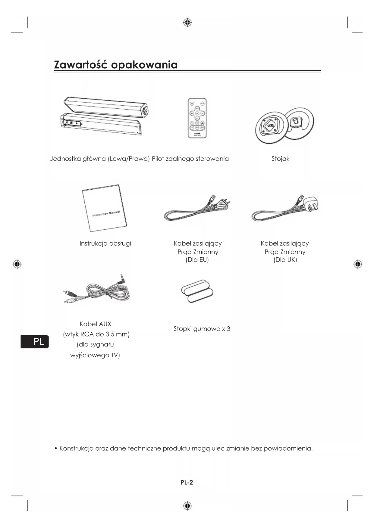 - Konstrukcja oraz dane techniczne produktu mogu ulec zmianie bez powiadomienia.