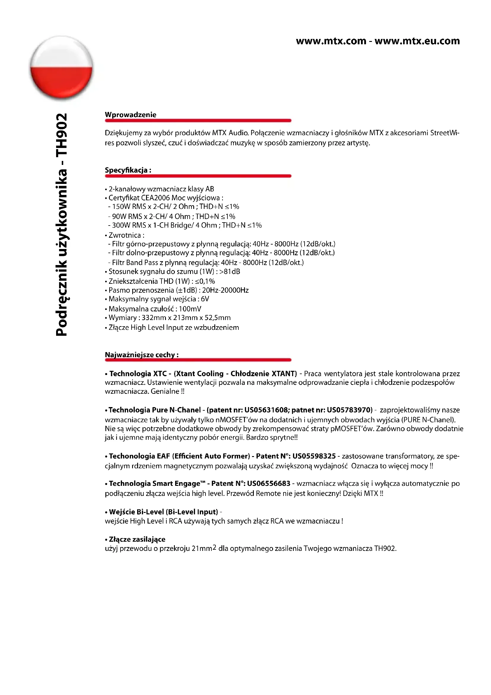 INSTRUKCJA OBSŁUGI TH902 MTX Audio
