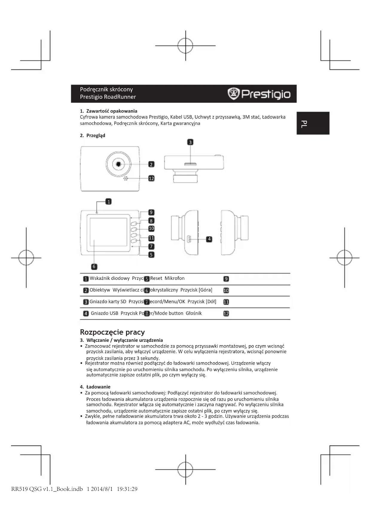 - Czułość ISO: Ustawienie czułości ISO. RR519 QSG v1.1_Book.indb 2 2014/8/1 19:31:29Podręcznik skrócony Prestigio RoadRunner