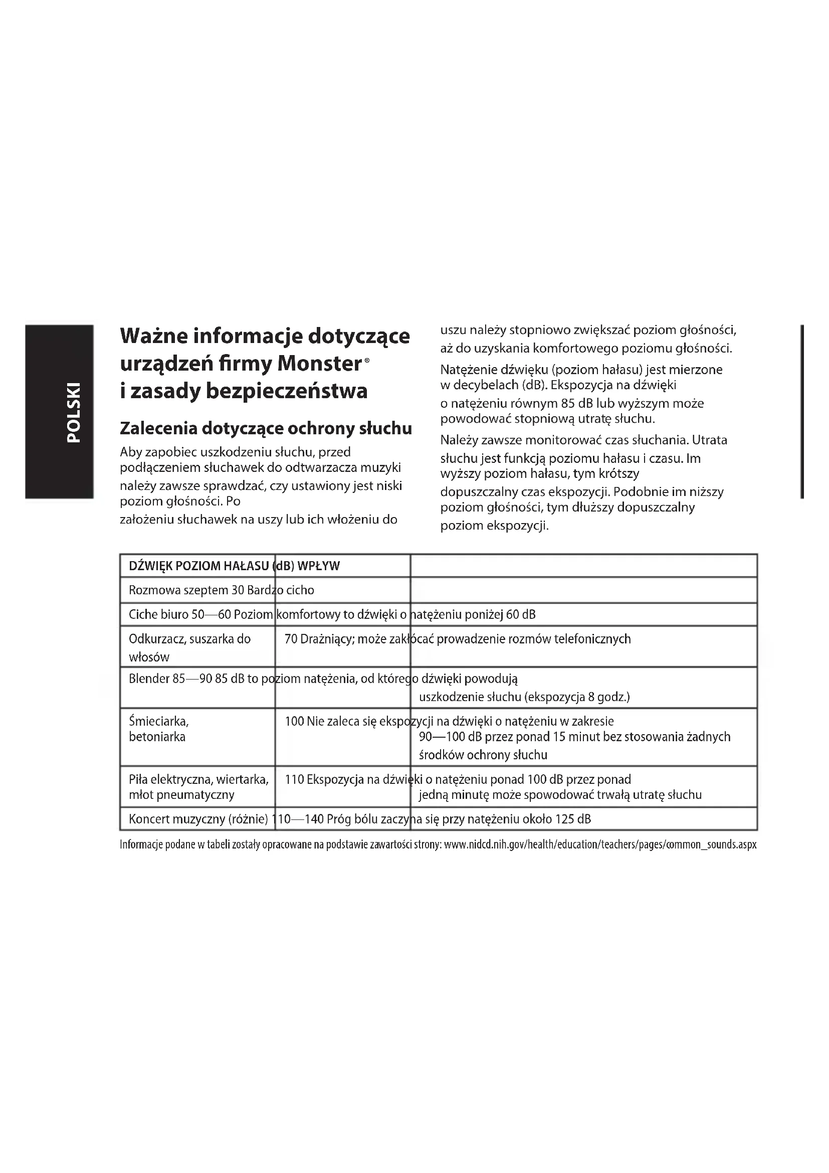 Wiecej informaci o ustalaniu bezpiecznego poziomu sluchania i innate waznezasady bezpieczenstwa opracowane przyez stowarzyszenia Consumer Electronics Association移动端 znalez c w witrynie www.ce.org. Wazne informacja o zapobieganiu utracie sluchu spowodOWANE j halasem i peNa liste haasów, ktore moga powodowauszkodzenia sluchu移动端 znalez c w witrynie fundaci Deafness Research Foundation pod adresem www.drf.org.