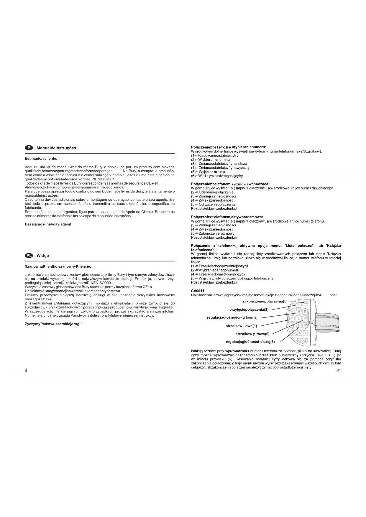 zakupiliście samochodowy zestaw głośnomówiący firmy Bury i tym samym zdecydowaliście się na produkt wysokiej jakości o najwyższym komforcie obsługi. Produkcja, serwis i zbyt podlegajaścislejkontrolijakościwgnormDINENISO9001.