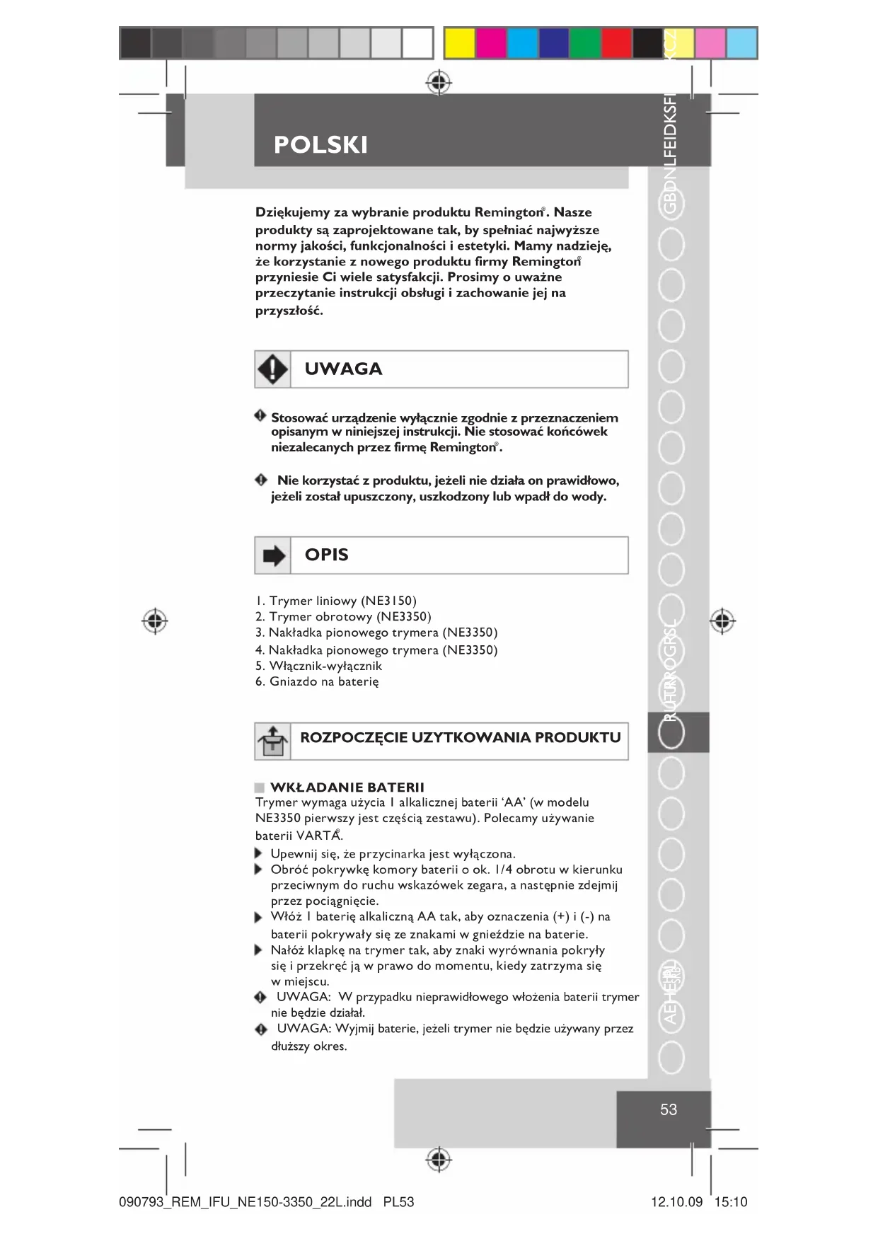Jótállási idő: 2 év MAGYAR Forgalmazó neve, címe: Típus: Vásárlás időpontja: 090793_REM_IFU_NE150-3350_22L.indd HUN52090793_REM_IFU_NE150-3350_22L.indd HUN52 12.10.09 15:1012.10.09 15:1053 POLSKI GBDNLFEIDKSFINPSKCZ HUN PLRUTRROGRSL HR/ SRB AEHE PL Dziękujemy za wybranie produktu Remington . Nasze produkty są zaprojektowane tak, by spełniać najwyższe normy jakości, funkcjonalności i estetyki. Mamy nadzieję, że korzystanie z nowego produktu firmy Remington