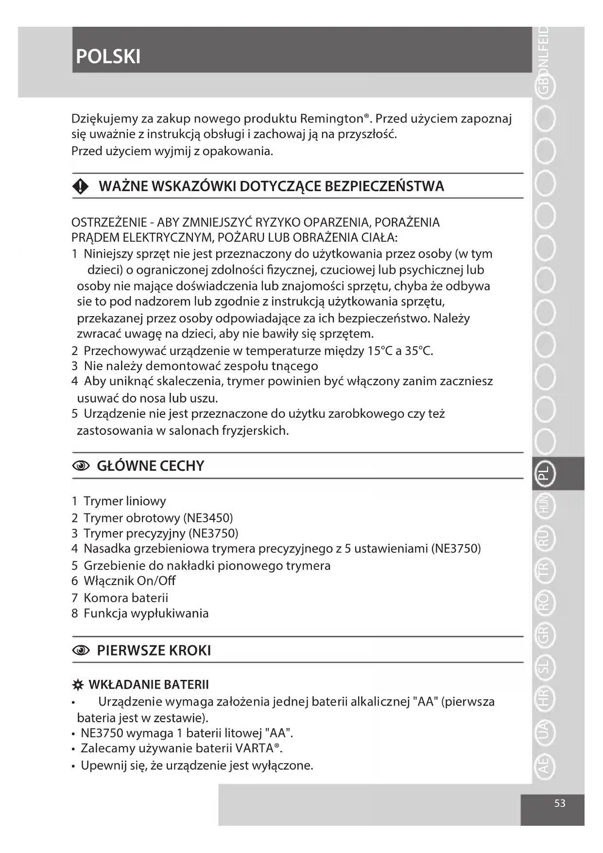 NE3450 - Zestaw do pielęgnacji REMINGTON - Bezpłatna instrukcja obsługi