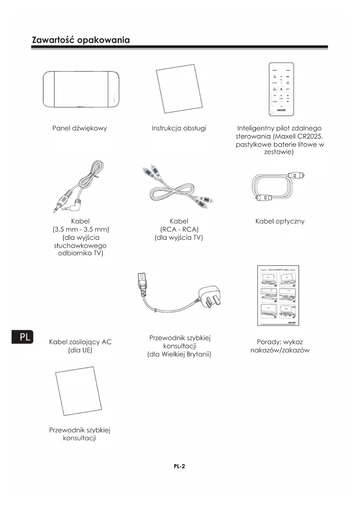Kabel zasilający AC (dla UE) Przewodnik szybkiej konsultacji (dla Wielkiej Brytanii) Porady: wykaz nakazów/zakazów