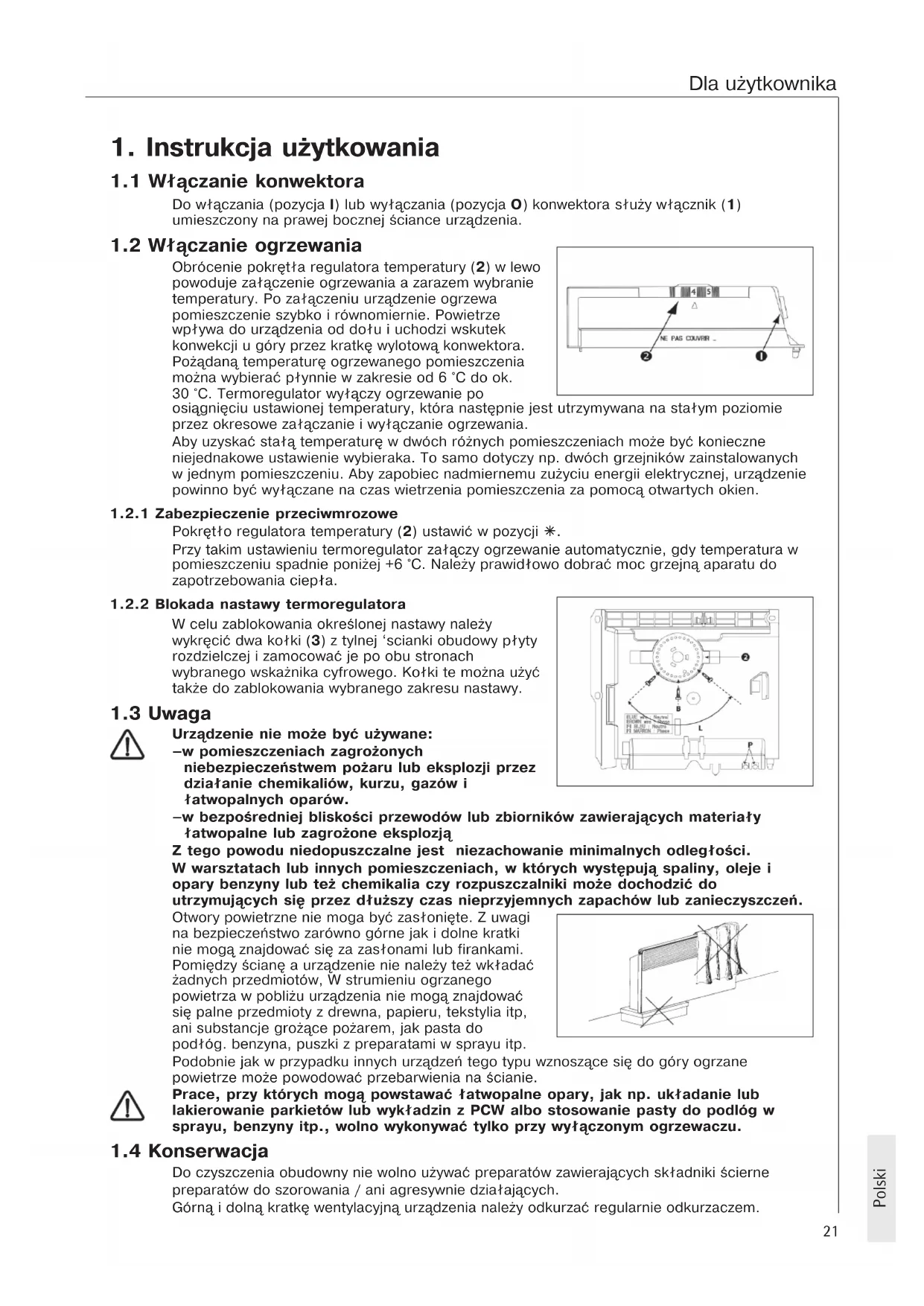 1. Instrukcja u¿ytkowania __________________________ 211.1 W³¹czanie konwektora __________________________ 21