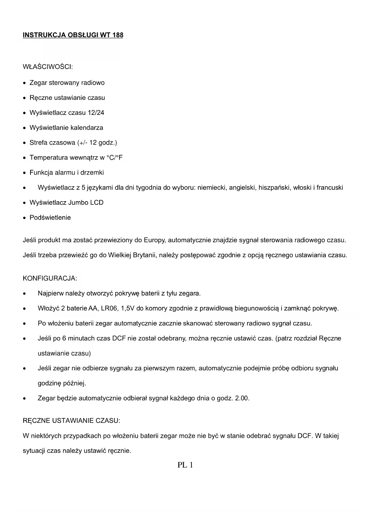 INSTRUKCJA OBSŁUGI WT 188 TECHNOLINE