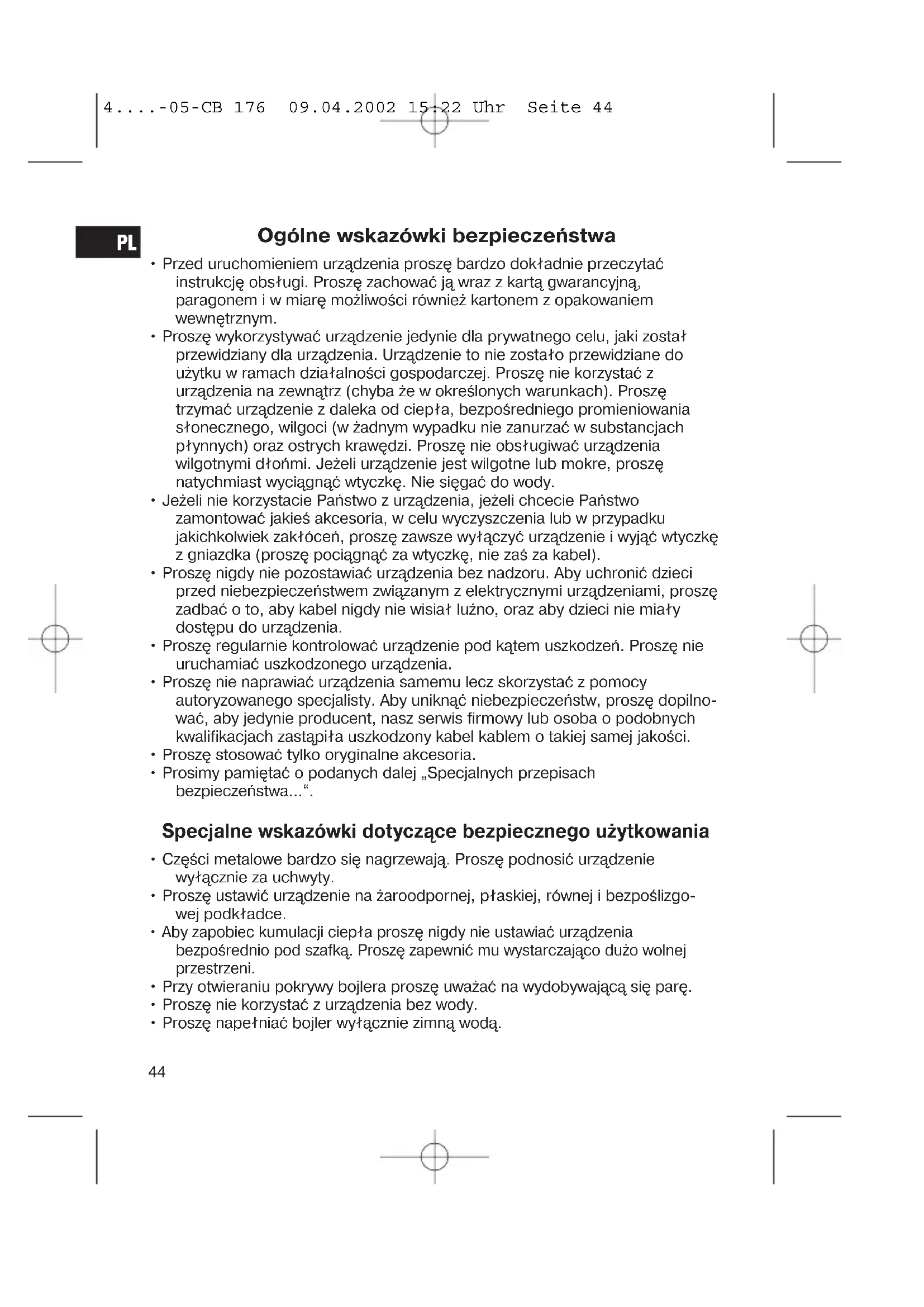 4....-05-CB 176 09.04.2002 15:22 Uhr Seite 43Ogólne wskazówki bezpieczeństwa