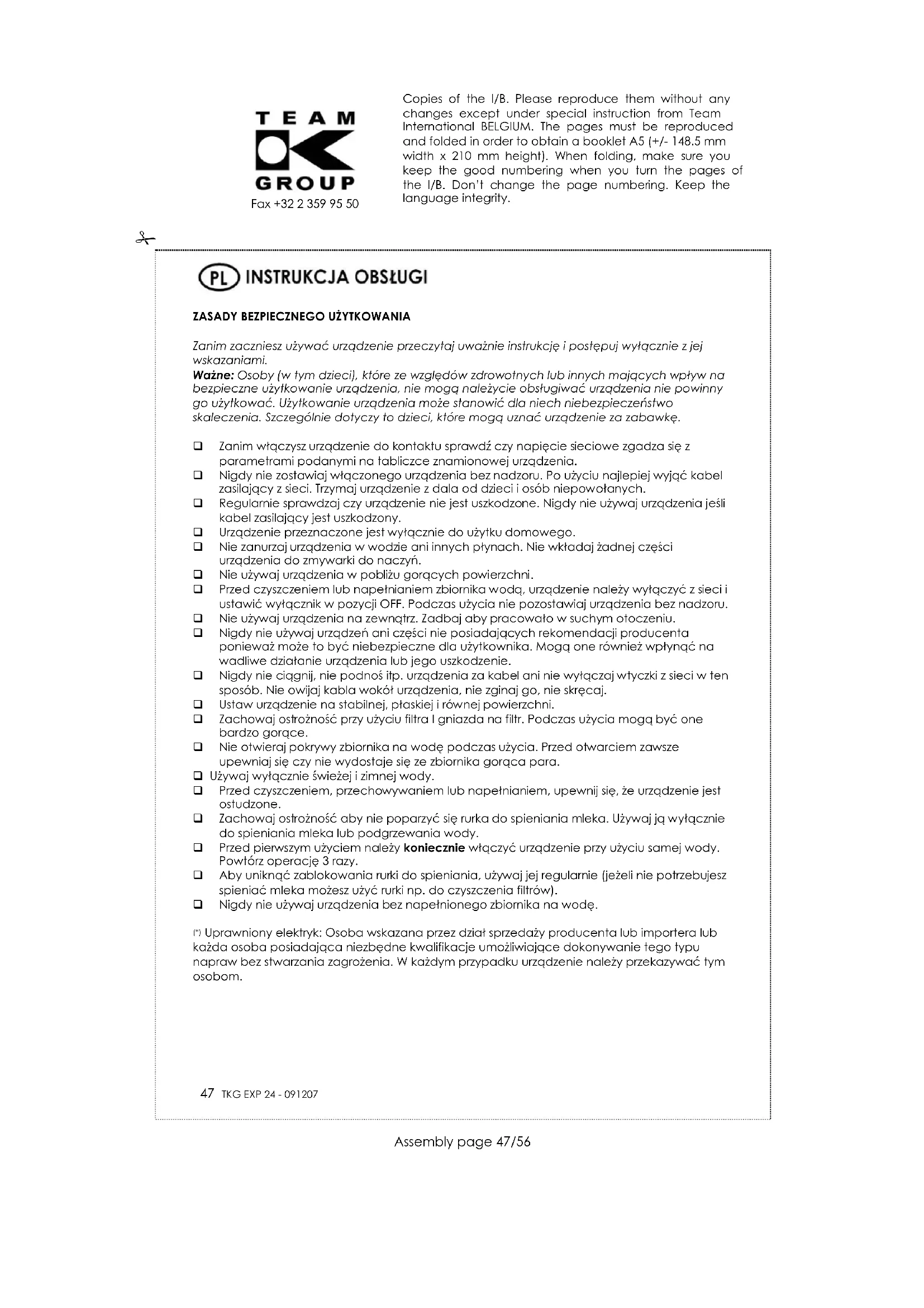 INSTRUKCJA OBSŁUGI TKG EXP 24 KALORIK