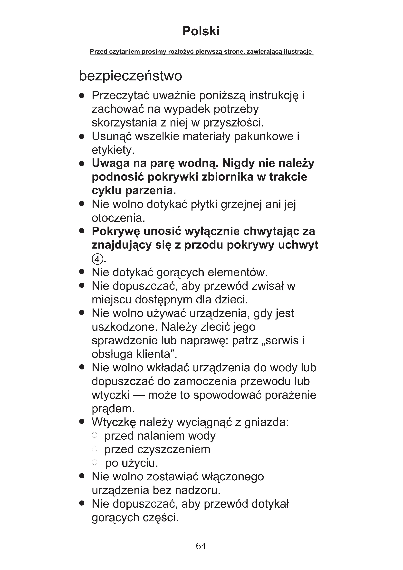 rzed czytaniem prosimy roz¢o¯yç pierwszå stronë, zawierajåcå ilustracje bezpieczeństwo