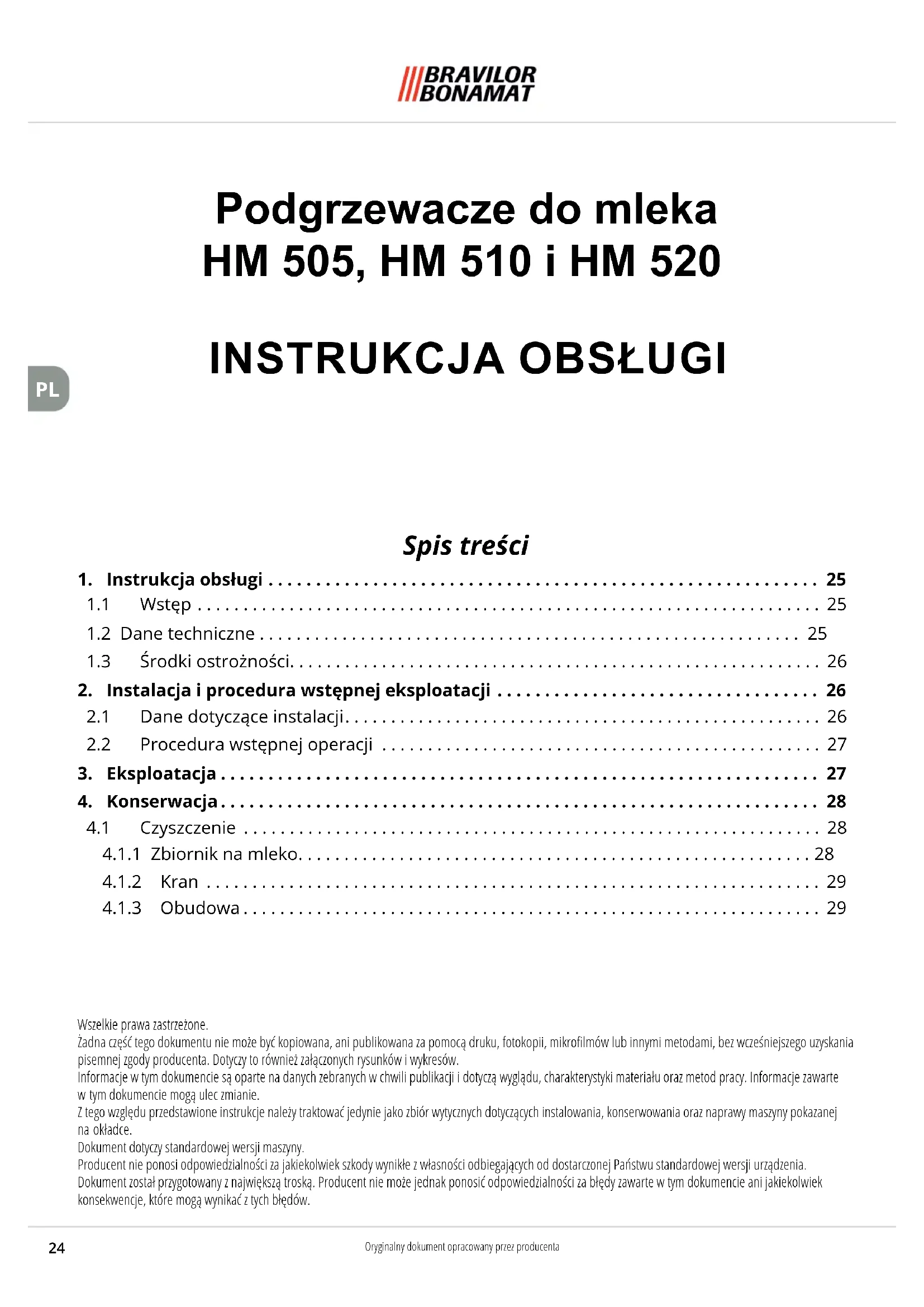 INSTRUKCJA OBSŁUGI HM520 Bravilor Bonamat