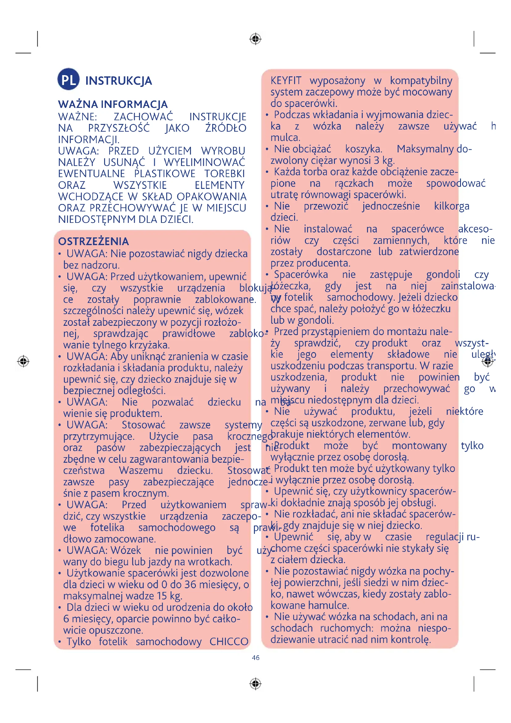 - Tylko fotelik samochodowy CHICCO KEYFIT wyposażony w kompatybilny systemzaczepowymożebyćmocowany dospacerówki.
