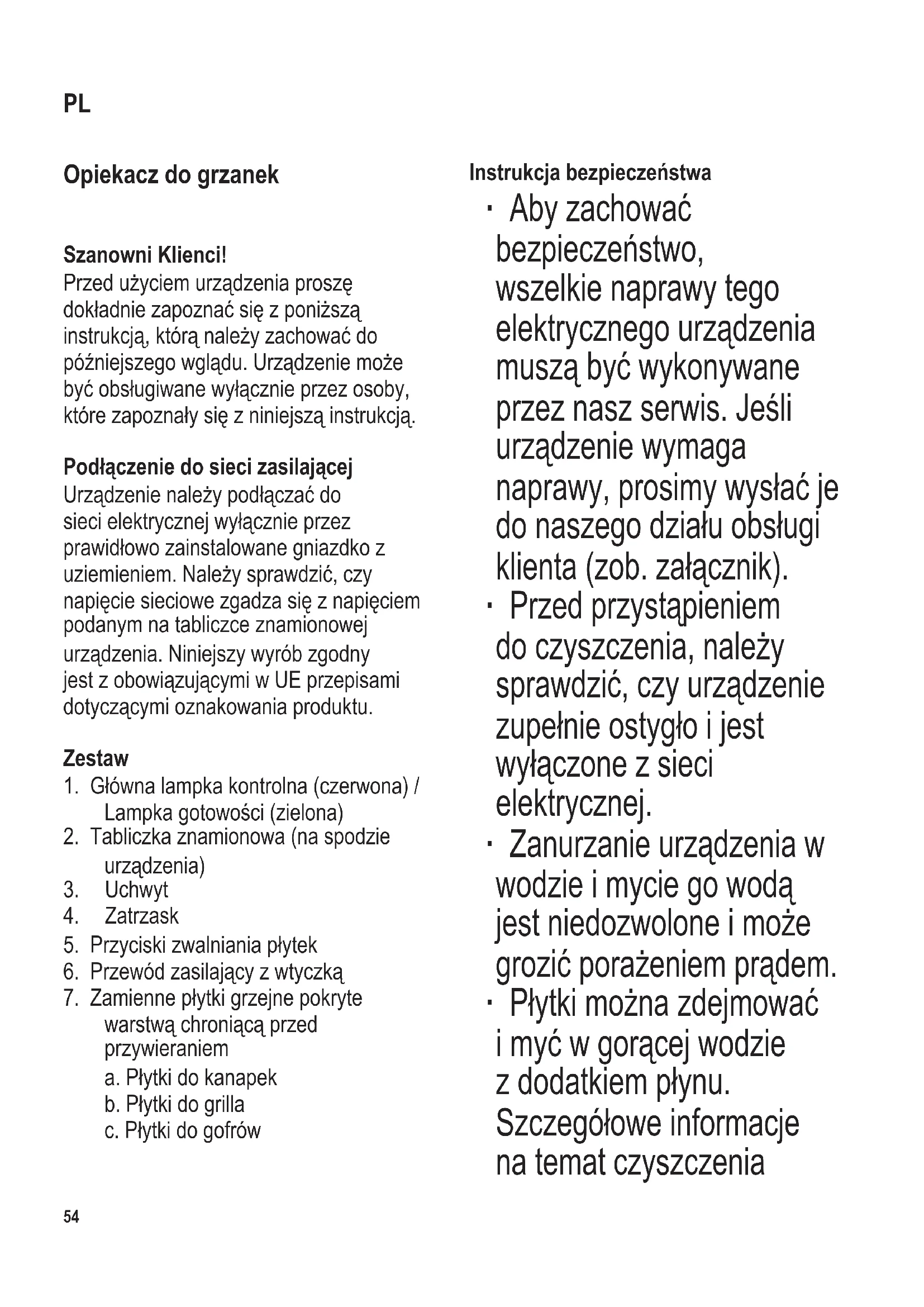 PL Instrukcja obstugi Opiekacz do grzanek 54