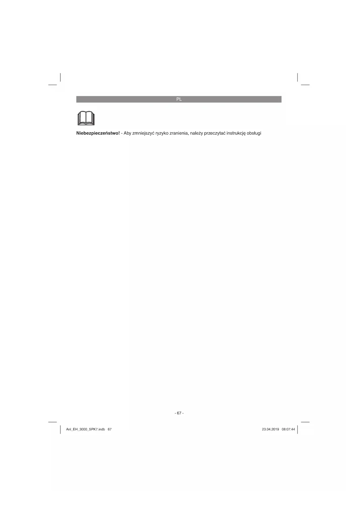 Niebezpieczeństwo! - Aby zmniejszyć ryzyko zranienia, należy przeczytać instrukcję obsługi Anl_EH_3000_SPK7.indb 67Anl_EH_3000_SPK7.indb 67 23.04.2019 08:07:4423.04.2019 08:07:44PL