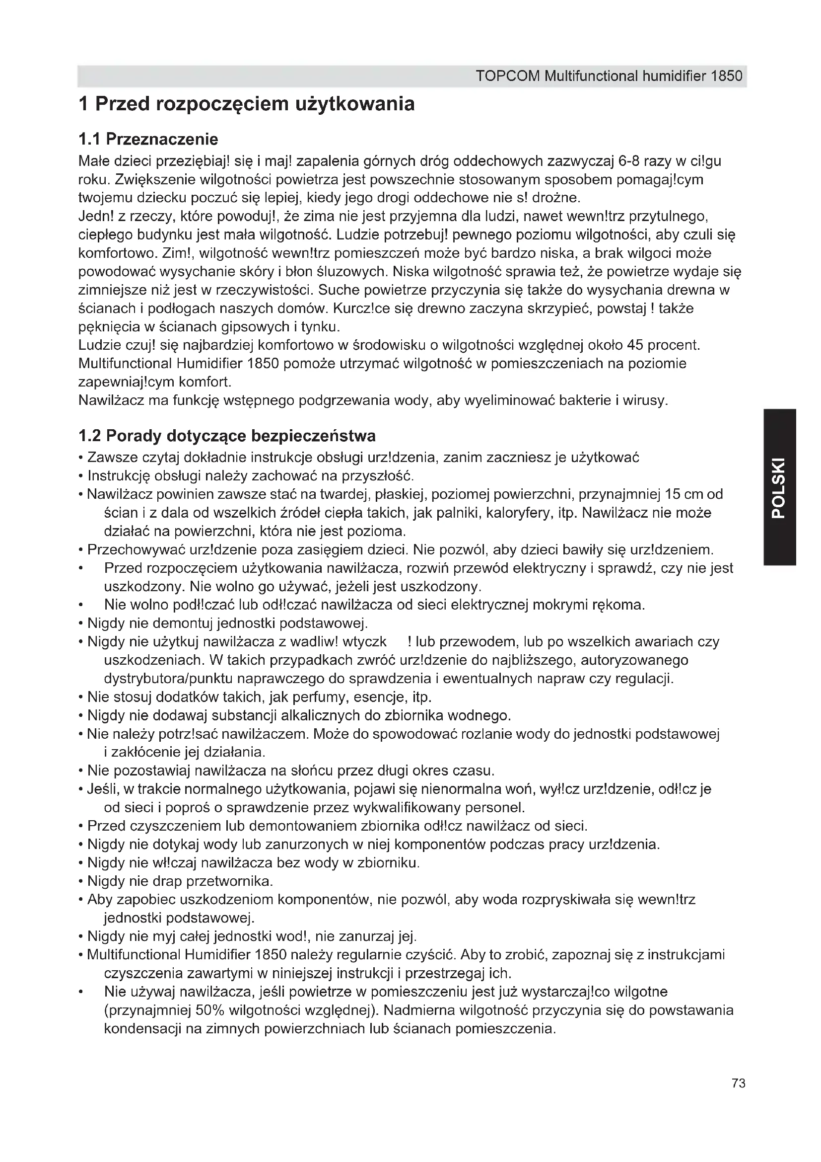 INSTRUKCJA OBSŁUGI Multifunctional Humidifier 1850 TOPCOM