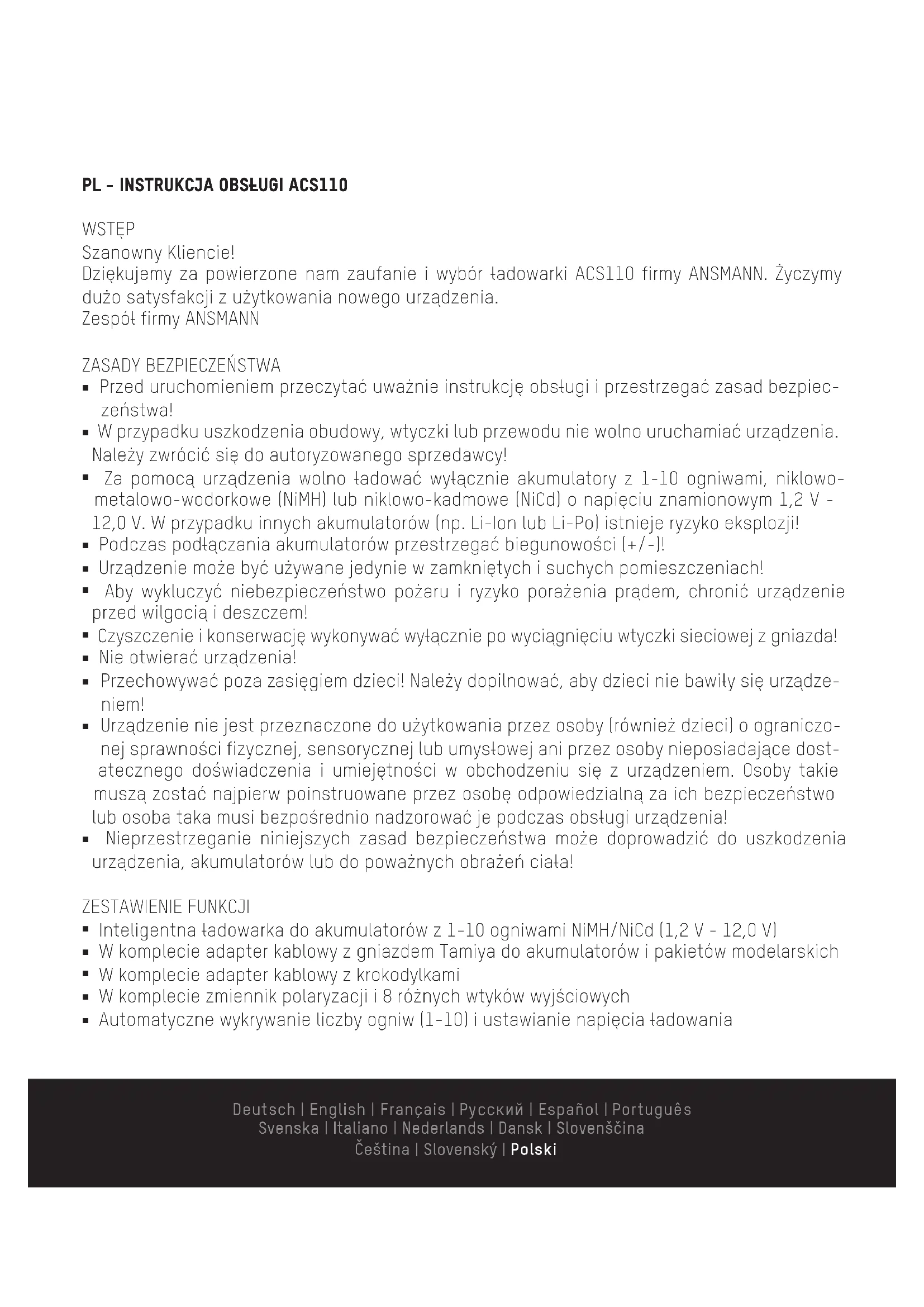 INSTRUKCJA OBSŁUGI ACS110 ANSMANN