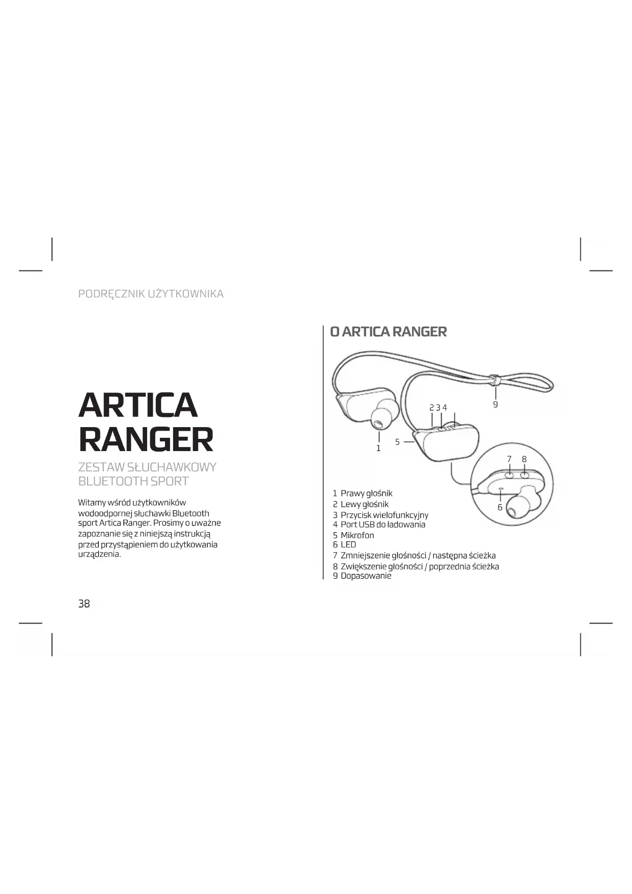 Witamy wśród użytkowników wodoodpornej słuchawki Bluetooth sport Artica Ranger. Prosimy o uważne zapoznanie się z niniejszą instrukcją przed przystąpieniem do użytkowania urządzenia.