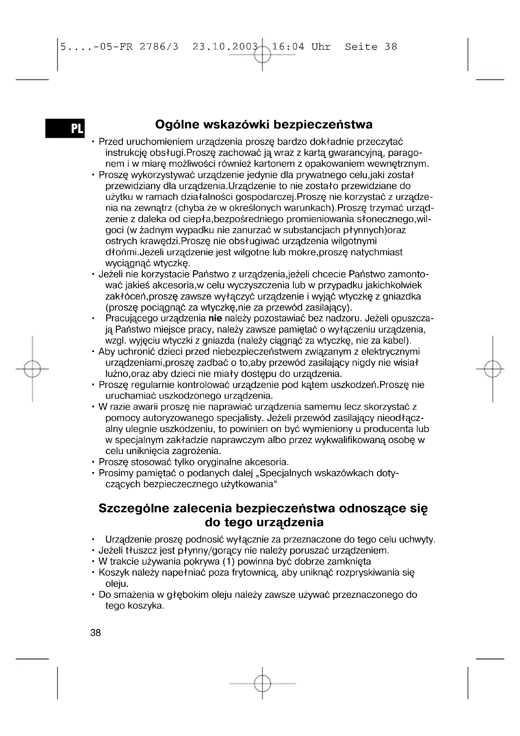 5....-05-FR 2786/3 23.10.2003 16:04 Uhr Seite 37Ogólne wskazówki bezpieczeństwa