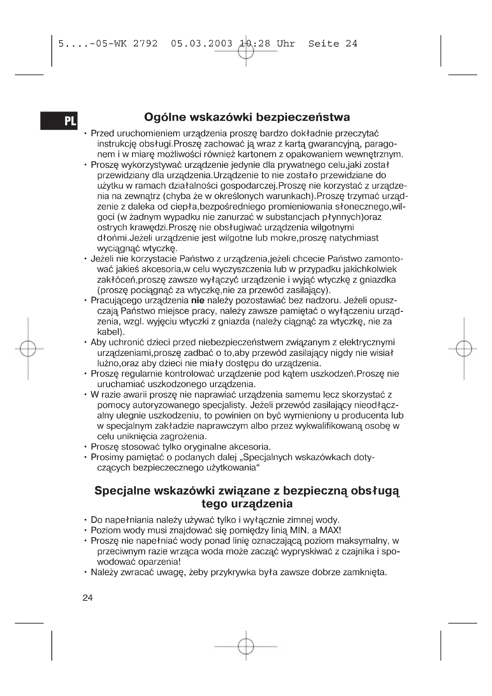 5....-05-WK 2792 05.03.2003 10:28 Uhr Seite 24• Nie otwierać pokrywki podczas gotowania wody.