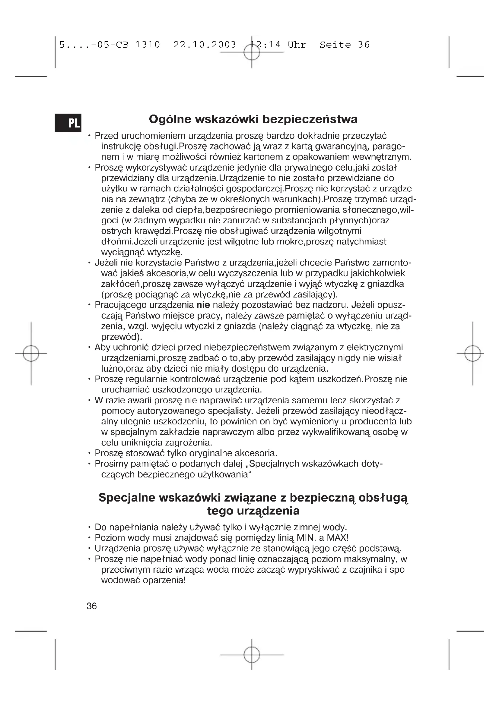 5....-05-CB 1310 22.10.2003 12:14 Uhr Seite 35Ogólne wskazówki bezpieczeństwa