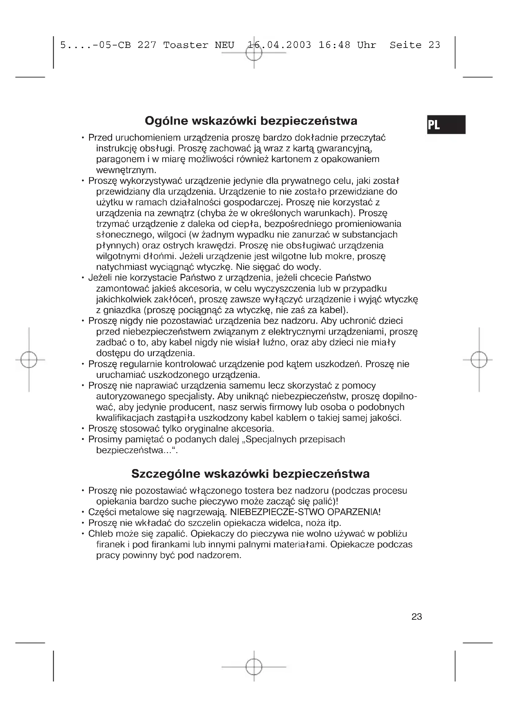 5....-05-CB 227 Toaster NEU 16.04.2003 16:48 Uhr Seite 22Ogólne wskazówki bezpieczeństwa