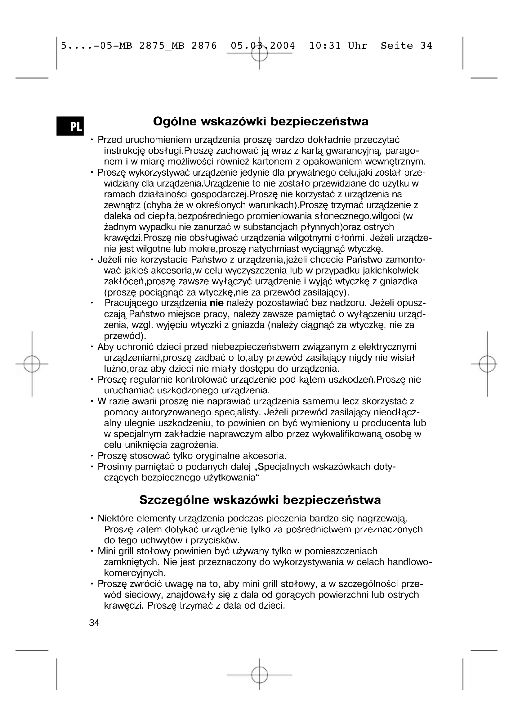 5....-05-MB 2875_MB 2876 05.03.2004 10:31 Uhr Seite 33Ogólne wskazówki bezpieczeństwa