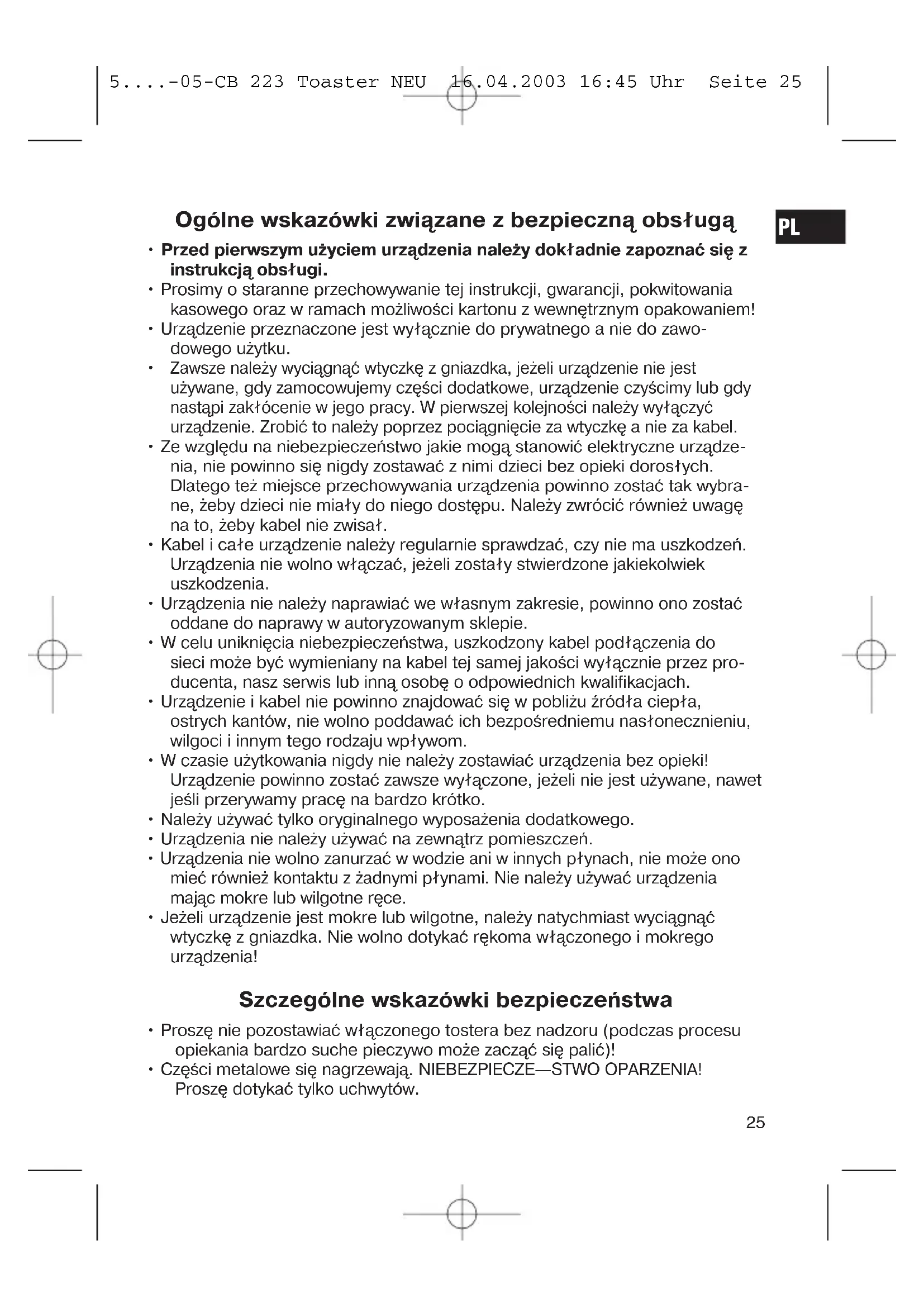 5....-05-CB 223 Toaster NEU 16.04.2003 16:45 Uhr Seite 24Ogólne wskazówki związane z bezpieczną obsługą