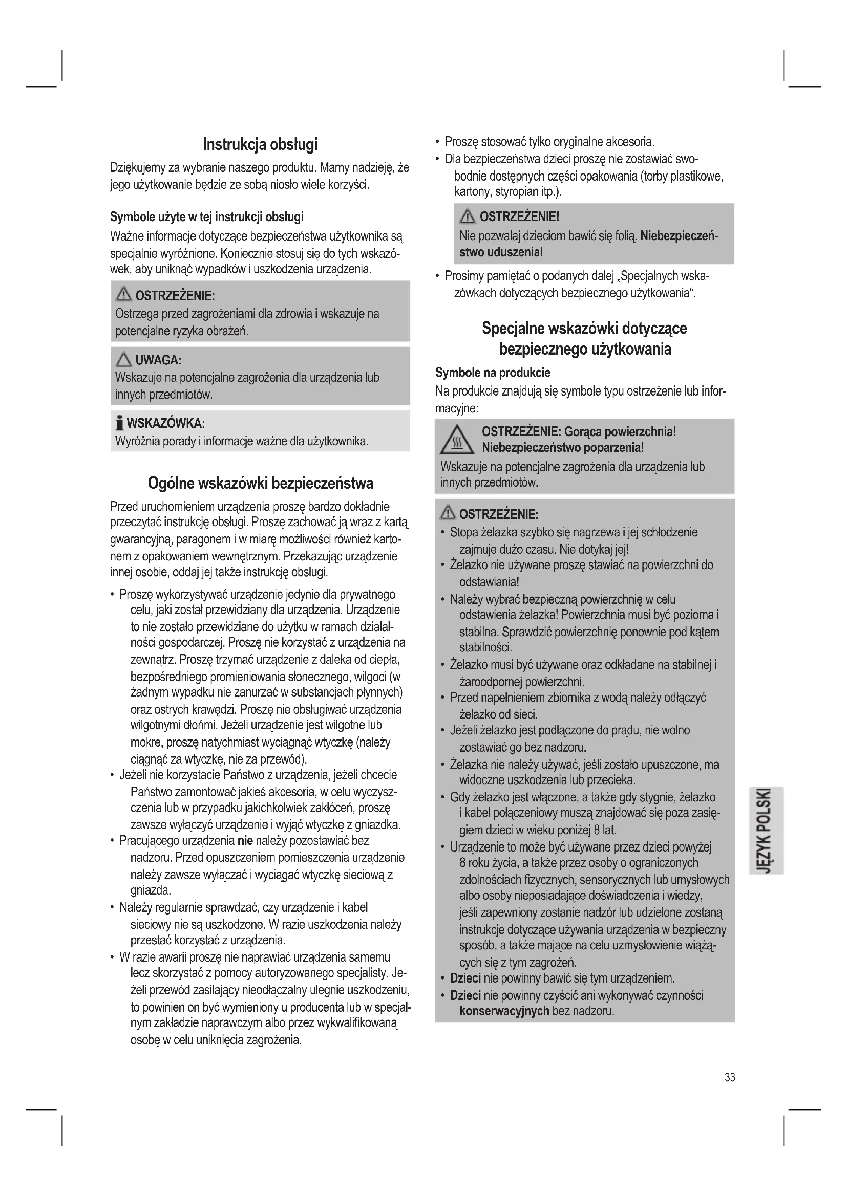 - Jeżeli żelazko jest podłączone do prądu, nie wolno zostawiać go bez nadzoru.