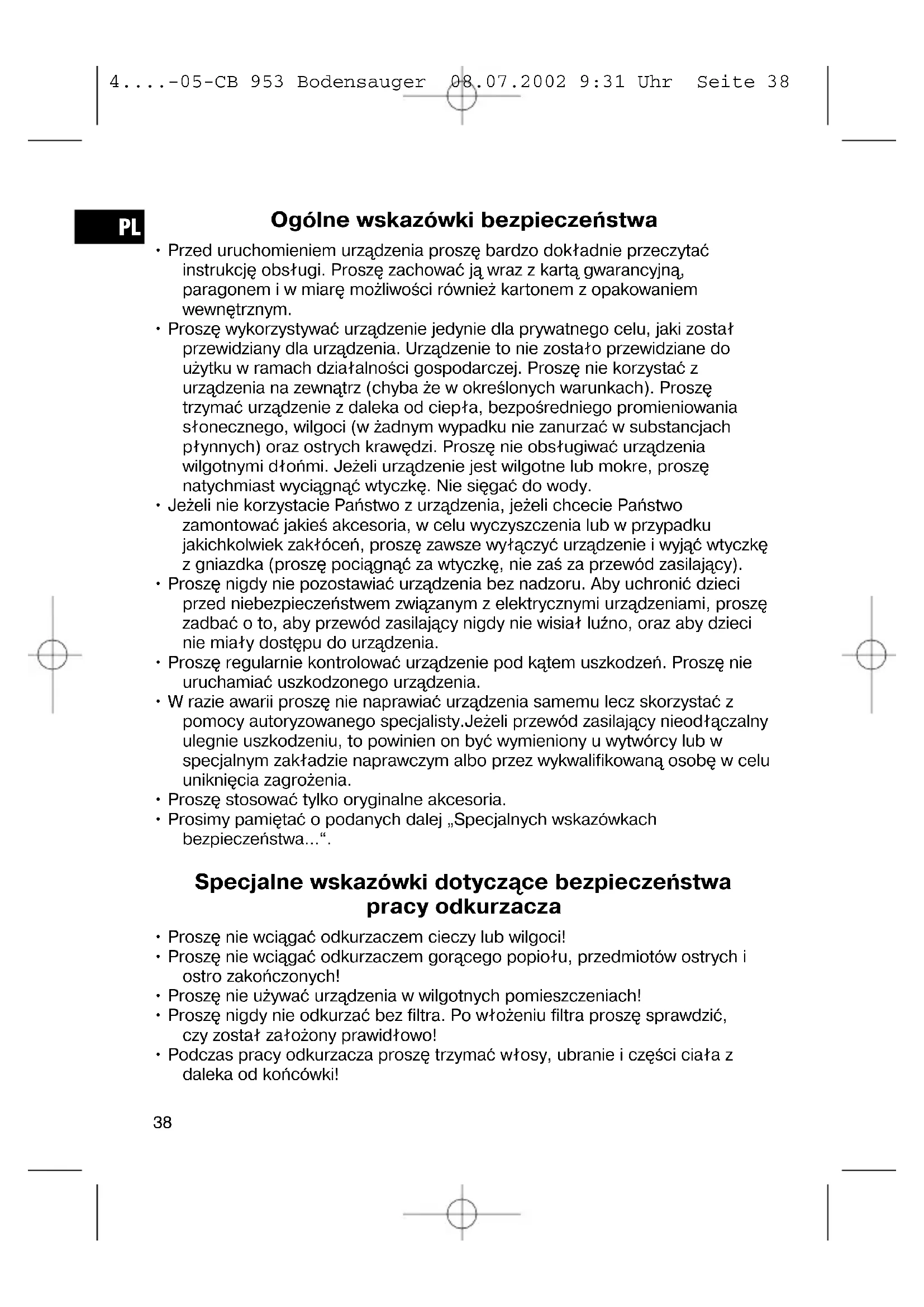 4....-05-CB 953 Bodensauger 08.07.2002 9:31 Uhr Seite 37Ogólne wskazówki bezpieczeństwa