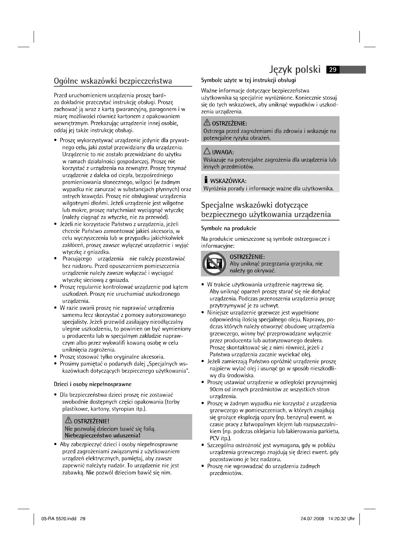 - Proszę nie wprowadzać do urządzenia żadnych przedmiotów. 05-RA 5520.indd 2905-RA 5520.indd 29 24.07.2008 14:20:32 Uhr24.07.2008 14:20:32 UhrJęzyk polski