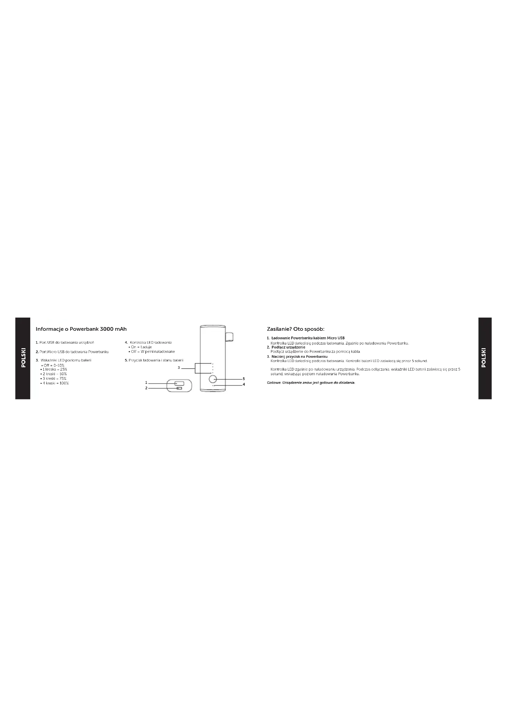Podac7 urzadzenie do Powerbanku za pomc - Naciñijprzycznik na Powerbanku Kontroka LED wsiće są podzac zadowania. Kontrolki bateri LED zawȩcie są z sekundni