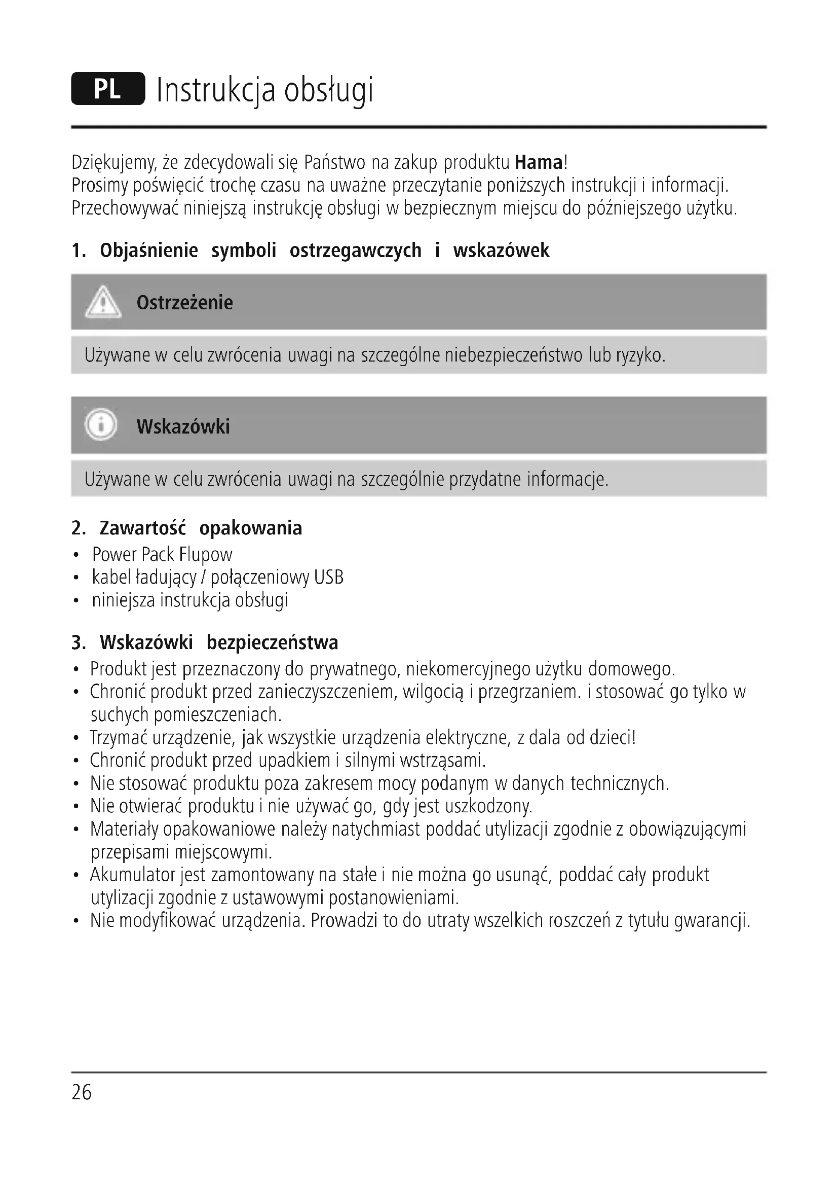 Flupow - Powerbank HAMA - Bezpłatna instrukcja obsługi