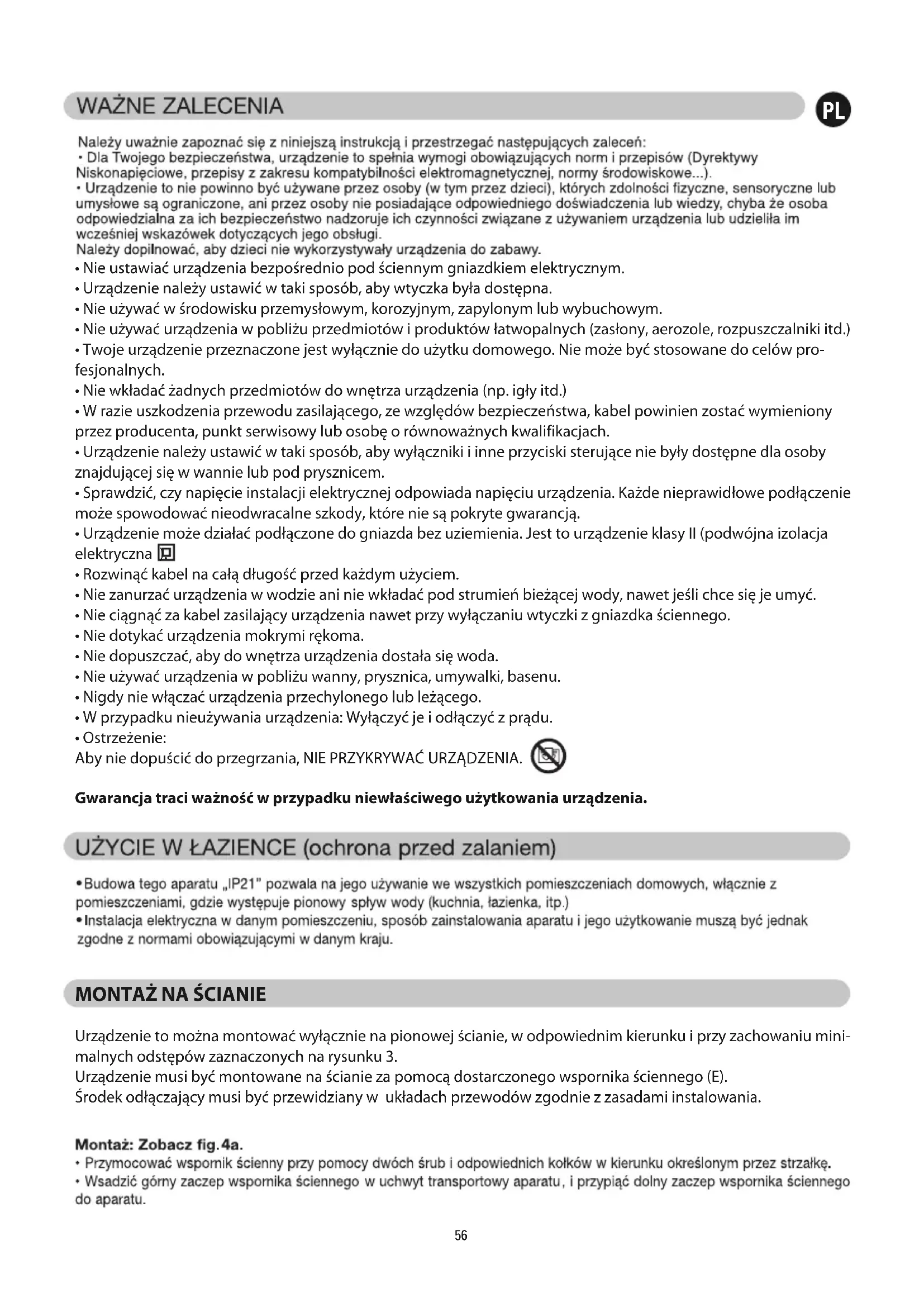 - Ostrzeżenie: Aby nie dopuścić do przegrzania, NIE PRZYKRYWAĆ URZĄDZENIA. Gwarancja traci ważność w przypadku niewłaściwego użytkowania urządzenia.