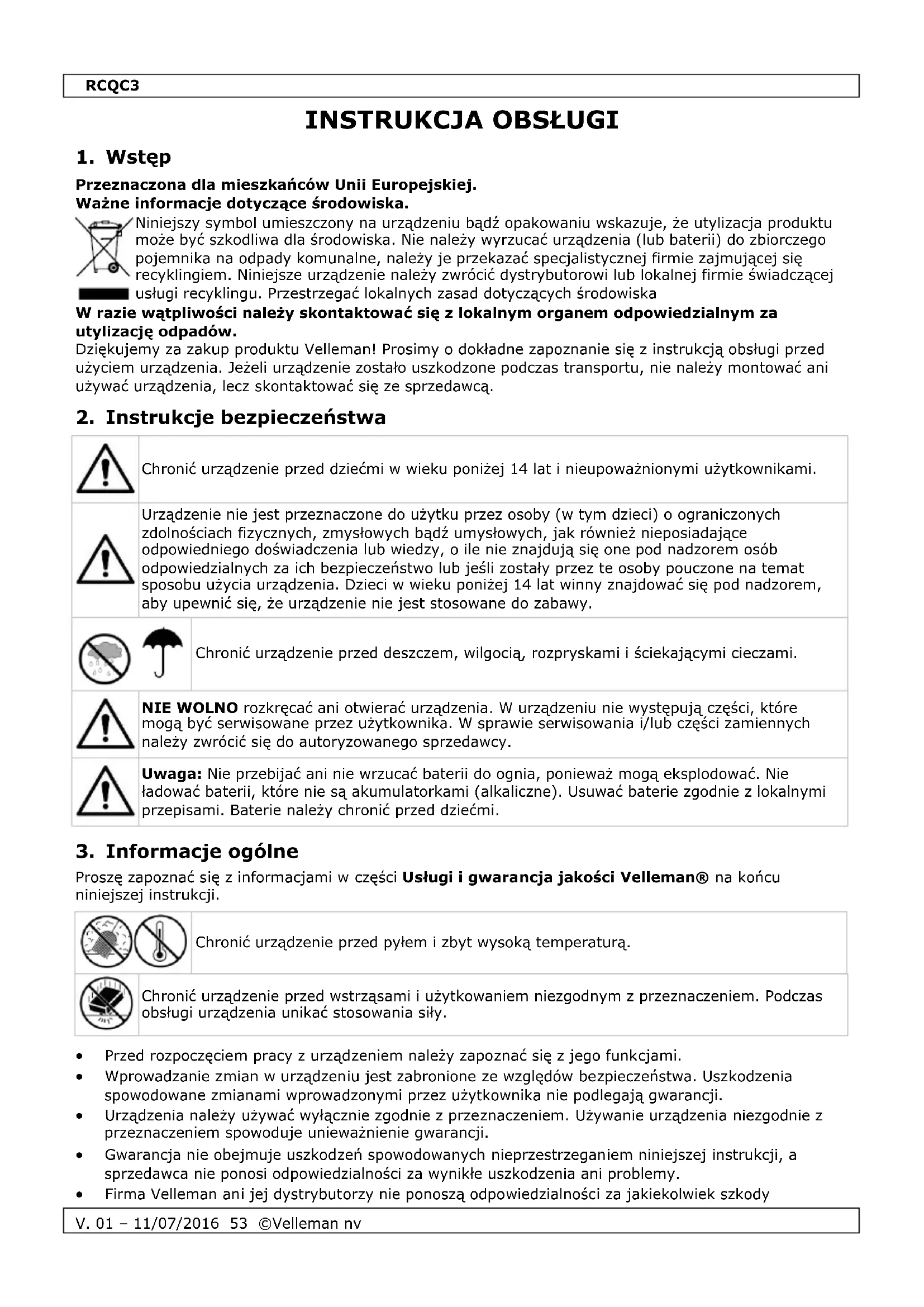 INSTRUKCJA OBSŁUGI RCQC3 VELLEMAN