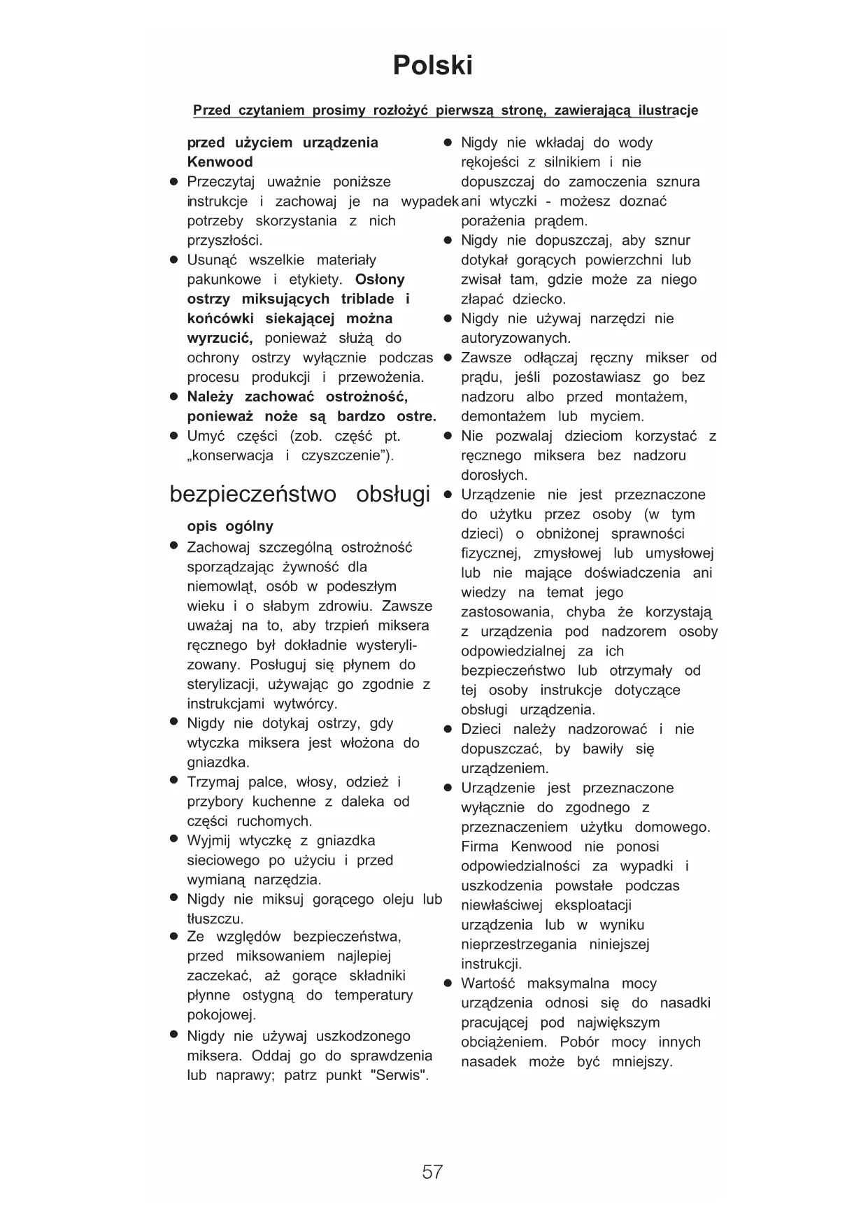 Nigdy nie u¯ywaj uszkodzonego miksera. Oddaj go do sprawdzenia lub naprawy; patrz punkt "Serwis".