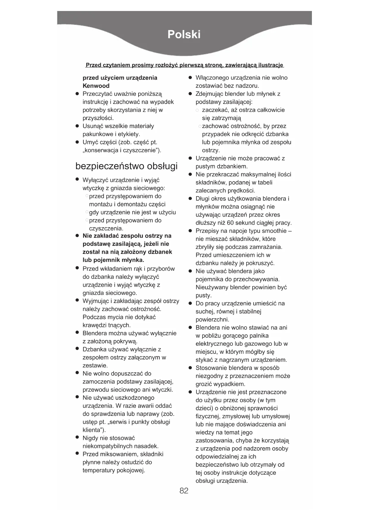 rzeznaczeniem użytku domowego. Firma Kenwood nie ponosi odpowiedzialności za wypadki i uszkodzenia powstałe podczas niewłaściwej eksploatacji urządzenia lub w wyniku nieprzestrzegania niniejszej instrukcji. przed podłączeniem do sieci