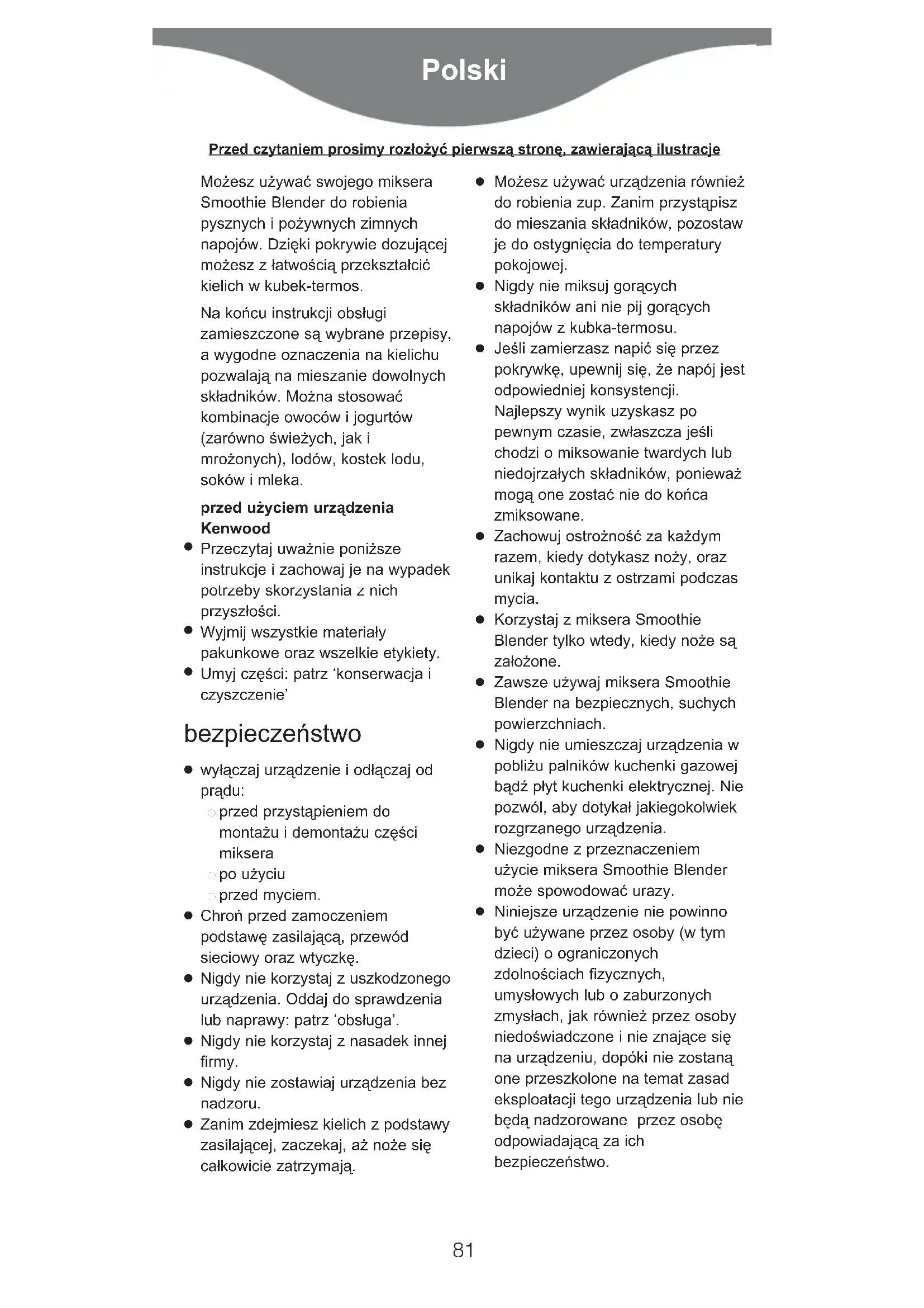 Urządzenie jest przeznaczone wyłącznie do użytku domowego. Firma Kenwood nie ponosi żadnej odpowiedzialności w przypadku niewłaściwego korzystania z urządzenia lub nieprzestrzegania niniejszych instrukcji. zanim podłączysz do prądu