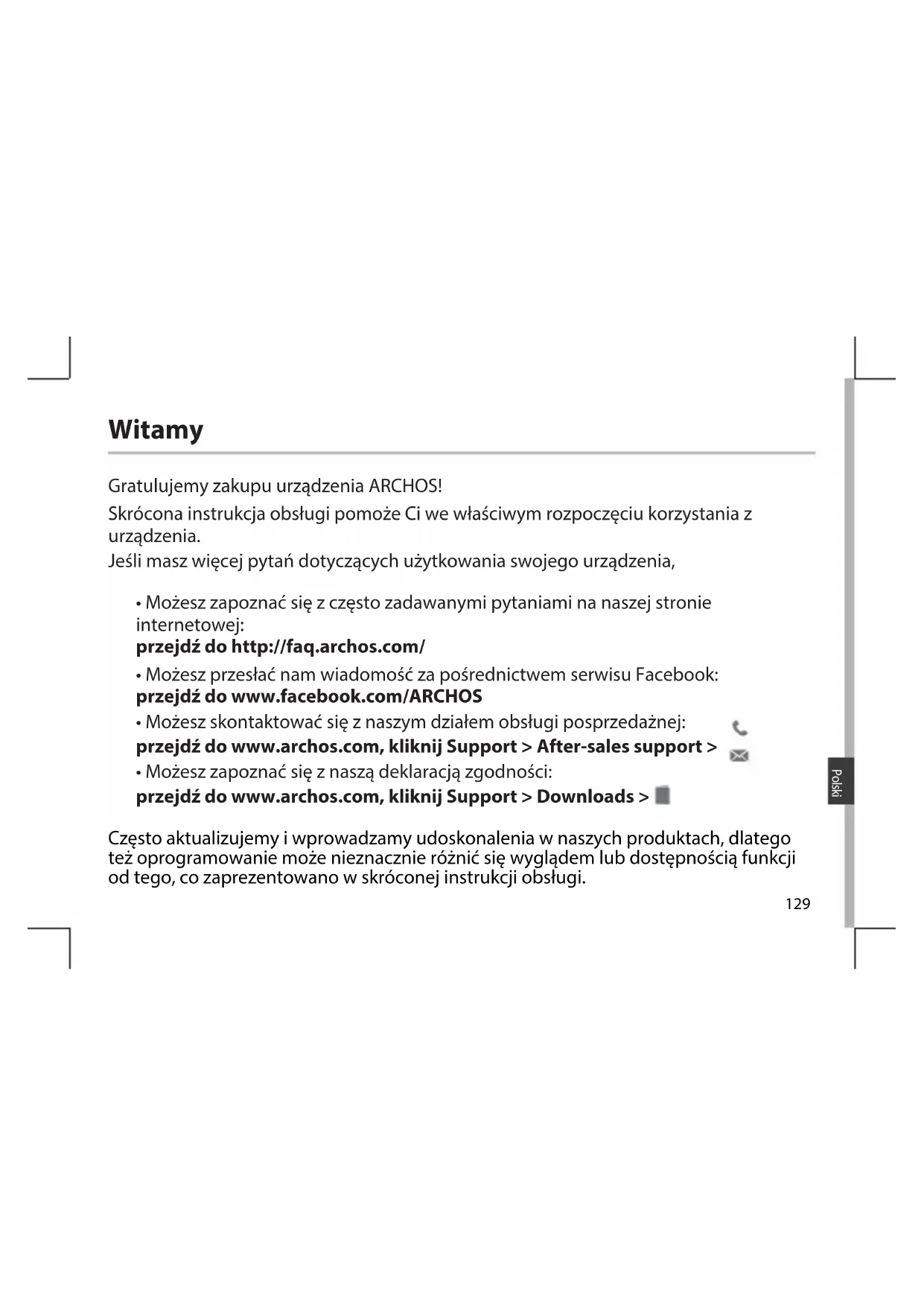 - Możesz przesłać nam wiadomość za pośrednictwem serwisu Facebook: przejdź do www.facebook.com/ARCHOS
