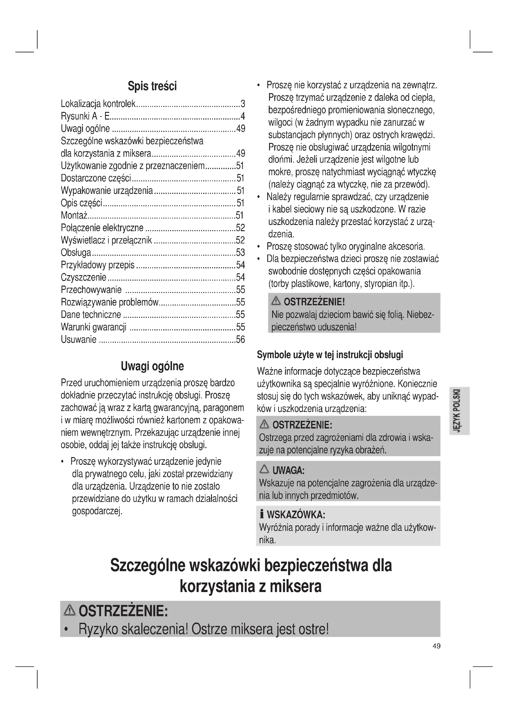 - Ryzykoskaleczenia!Ostrzemikserajestostre!50 OSTRZEŻENIE: