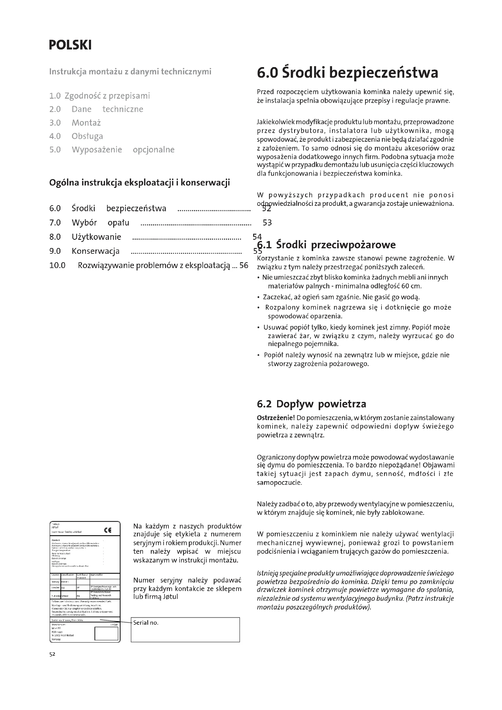 Numer seryjny nalezy podawac przy kazdym kontakcie ze skelem lub firmaj Jotul