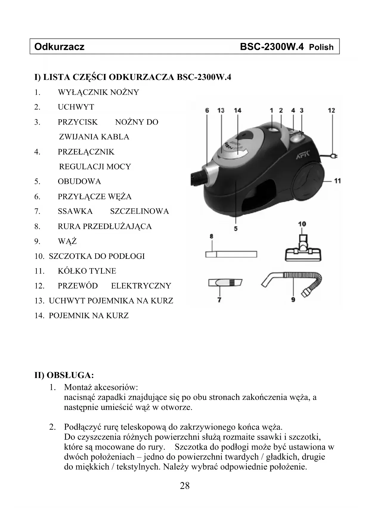 BSC 2300 - Odkurzacz AFK - Bezpłatna instrukcja obsługi
