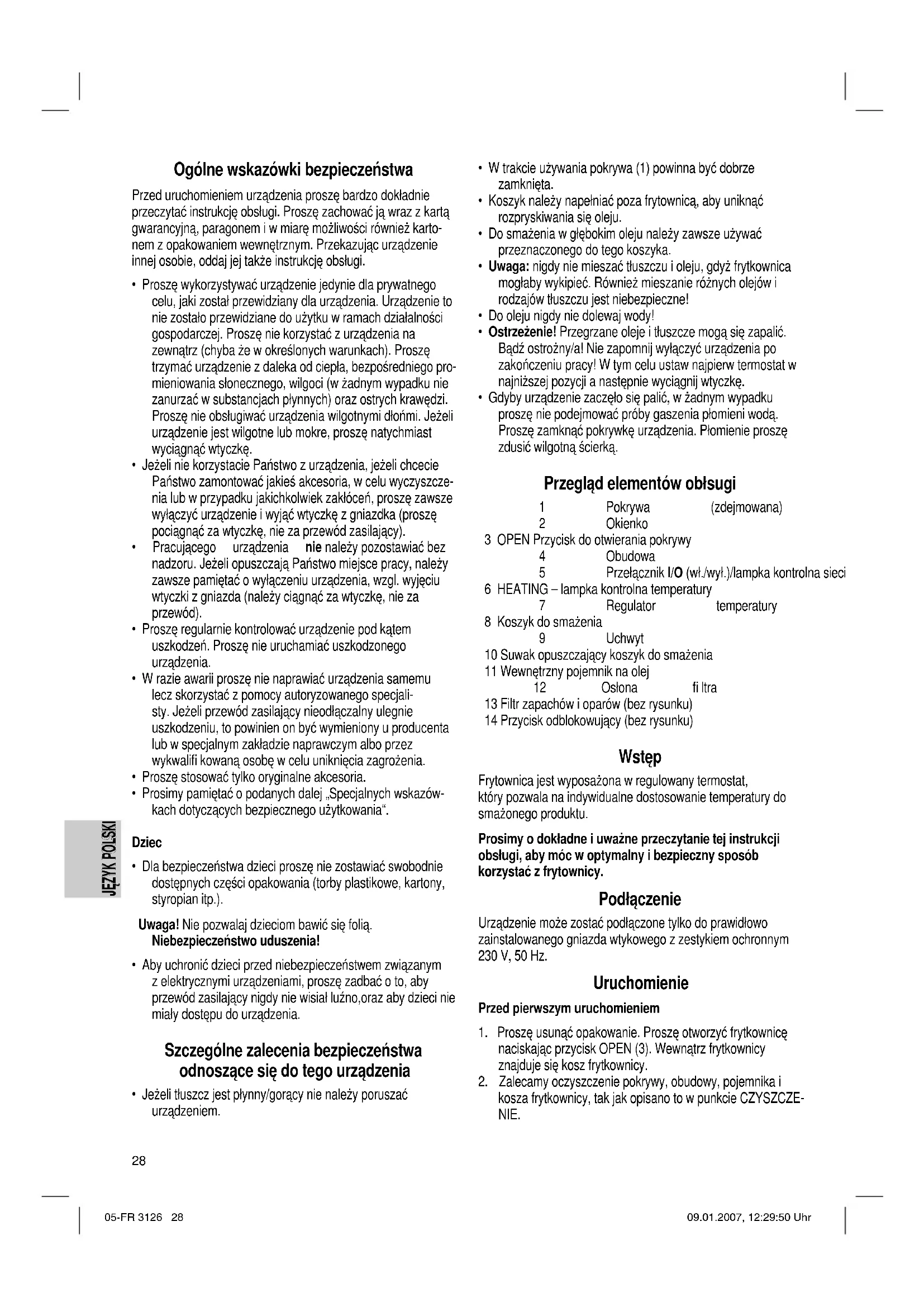 kosza frytkownicy, tak jak opisano to w punkcie CZYSZCZE- NIE. 05-FR 3126 28 09.01.2007, 12:29:50 Uhr29