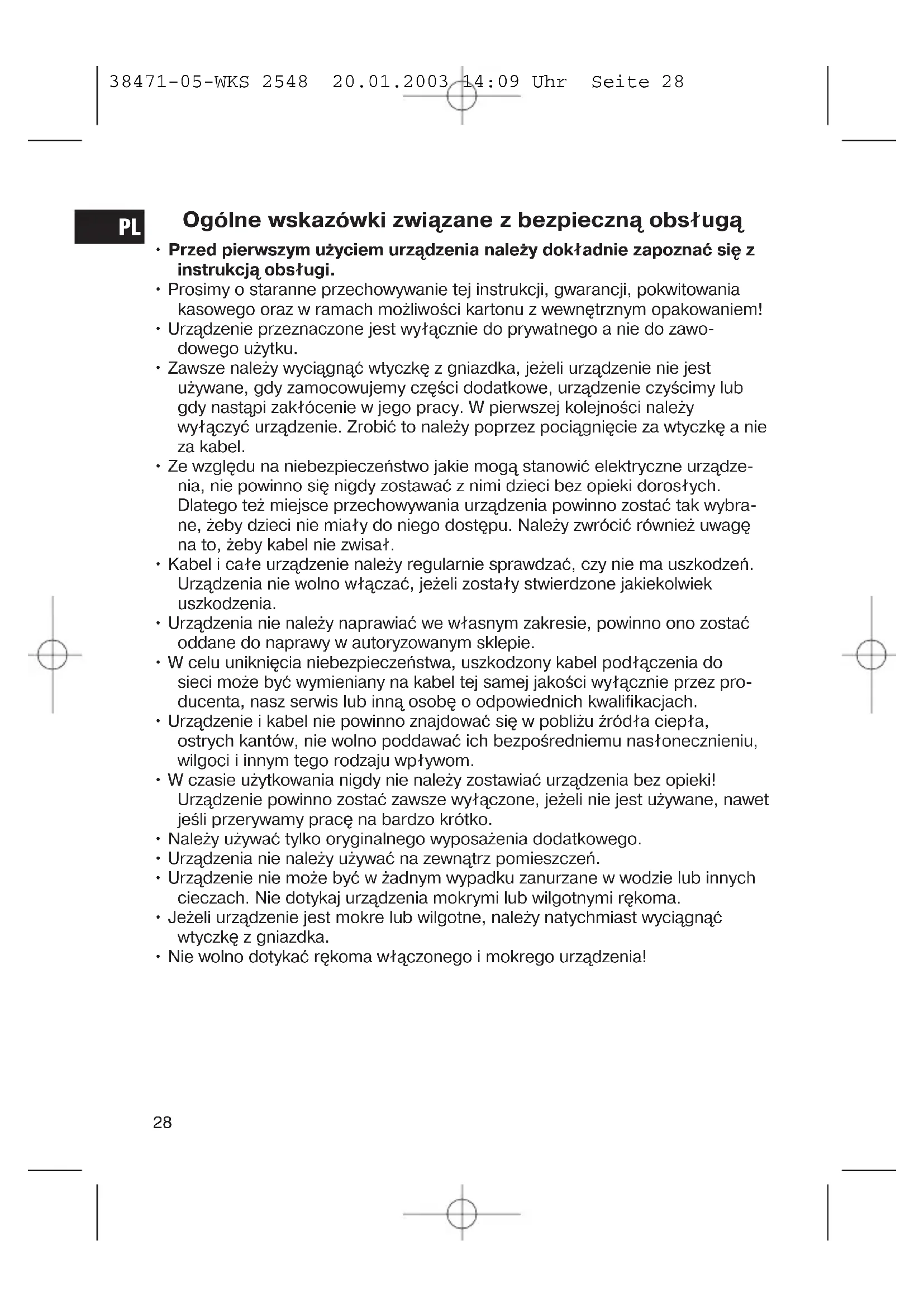 38471-05-WKS 2548 20.01.2003 14:09 Uhr Seite 28Specjalne wskazówki związane z bezpieczną obsługą tego urządzenia