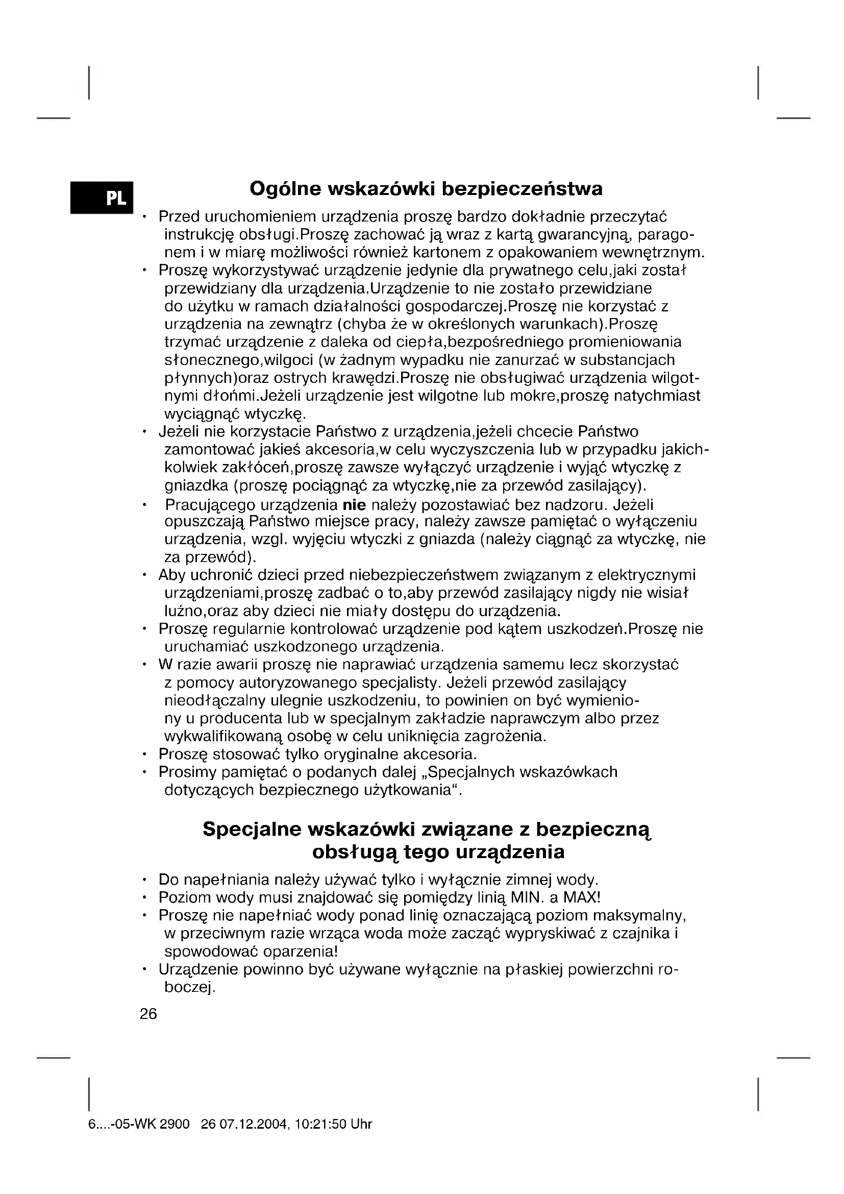 - Urządzenie powinno być używane wyłącznie na płaskiej powierzchni ro- boczej. 6....-05-WK 2900 26 07.12.2004, 10:21:50 UhrPL